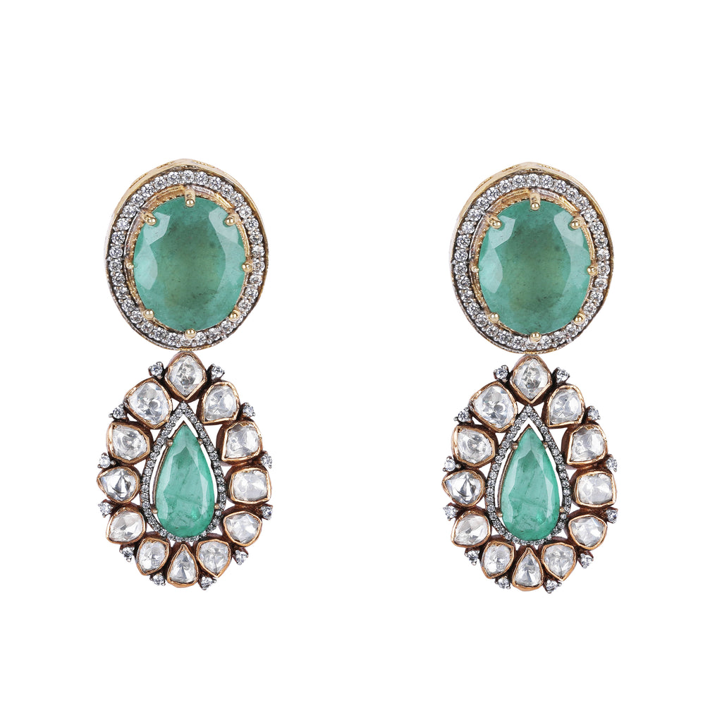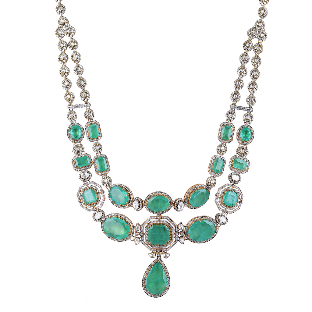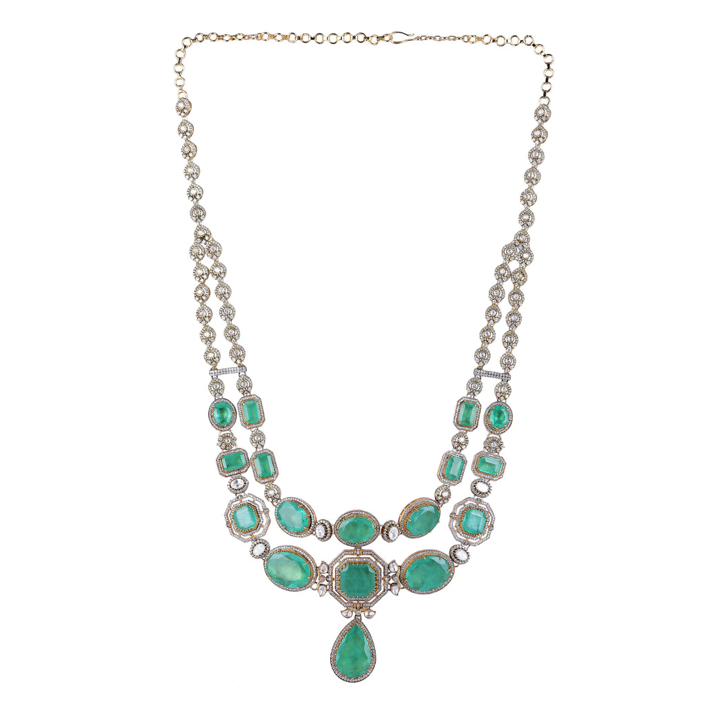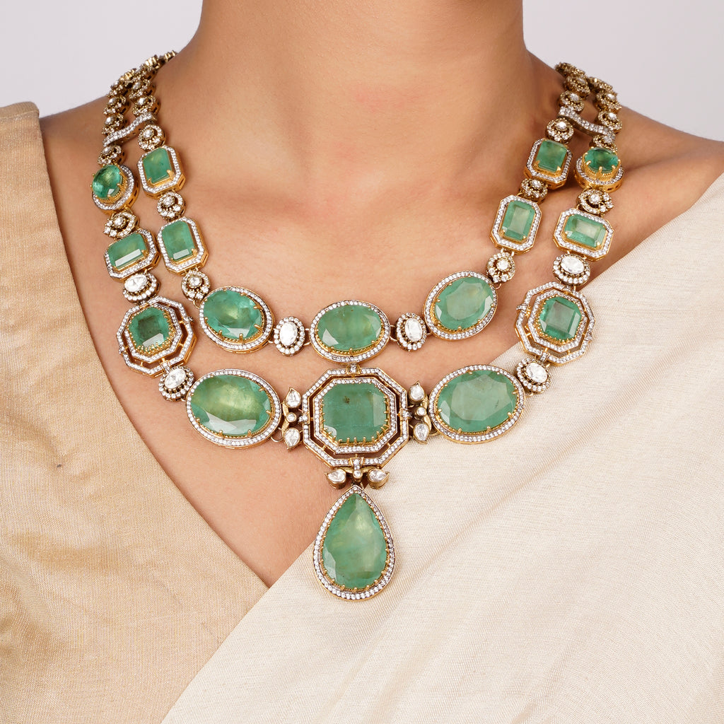 Details Size : Necklace L-18"XW-4" Earring L-4"XW-1" Stone Setting : Moissanite String(s) : Drop(s) : Tourmaline Finish : Gold Finding : Dori...