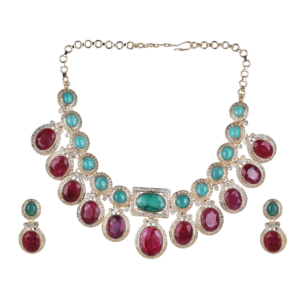 Details Size : Necklace L-11"XW-2.5" Earring L-2.5"XW-1" Stone Setting : Zircon String(s) : Drop(s) : Finish : Gold Finding : Hook Link...