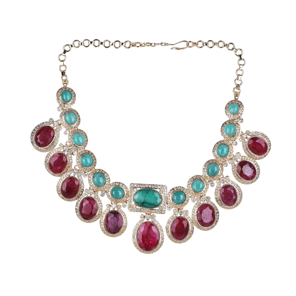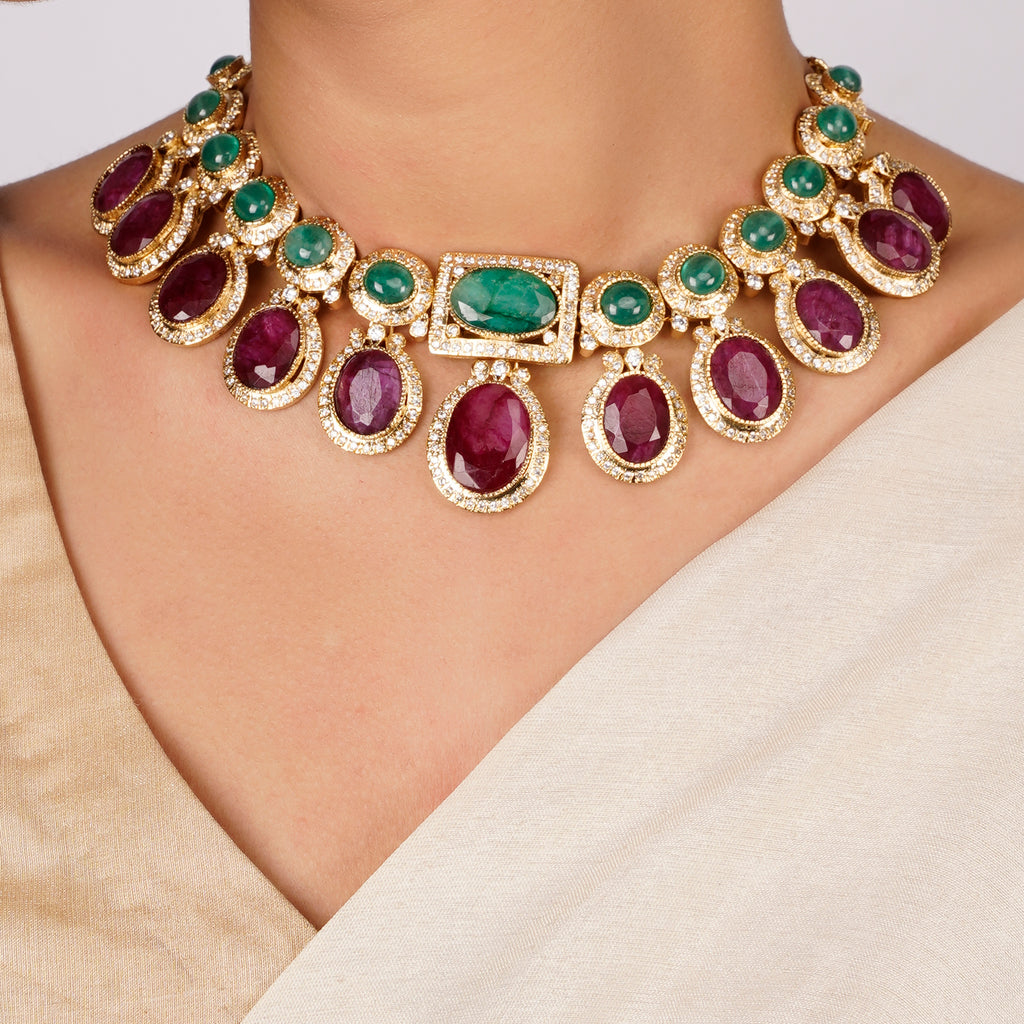 Details Size : Necklace L-18"XW-4" Earring L-4"XW-1" Stone Setting : Moissanite String(s) : Drop(s) : Tourmaline Finish : Gold Finding : Dori...