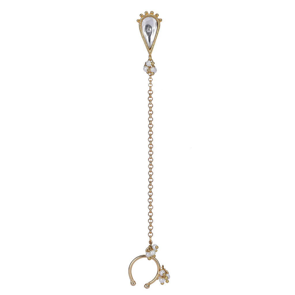 Details Size : Earring L- 3.5"X W-.02" Stone Setting : Kundan String(s) : Drop(s) : 22k Gold Plated Chain Finish : 22k...