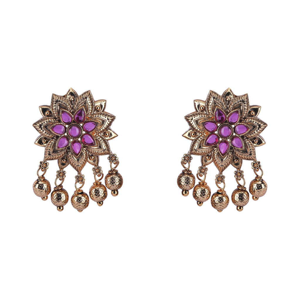 Details Size : Necklace L-21" X W-1.6" Earring L-1.3" X W-0.8" Stone Setting : Ruby String(s) : Drop(s) : Finish : Gold Plated Finding : Hook Link& Push Back Art Karat Jewelry is plated with 22k gold, studded with precious,...
