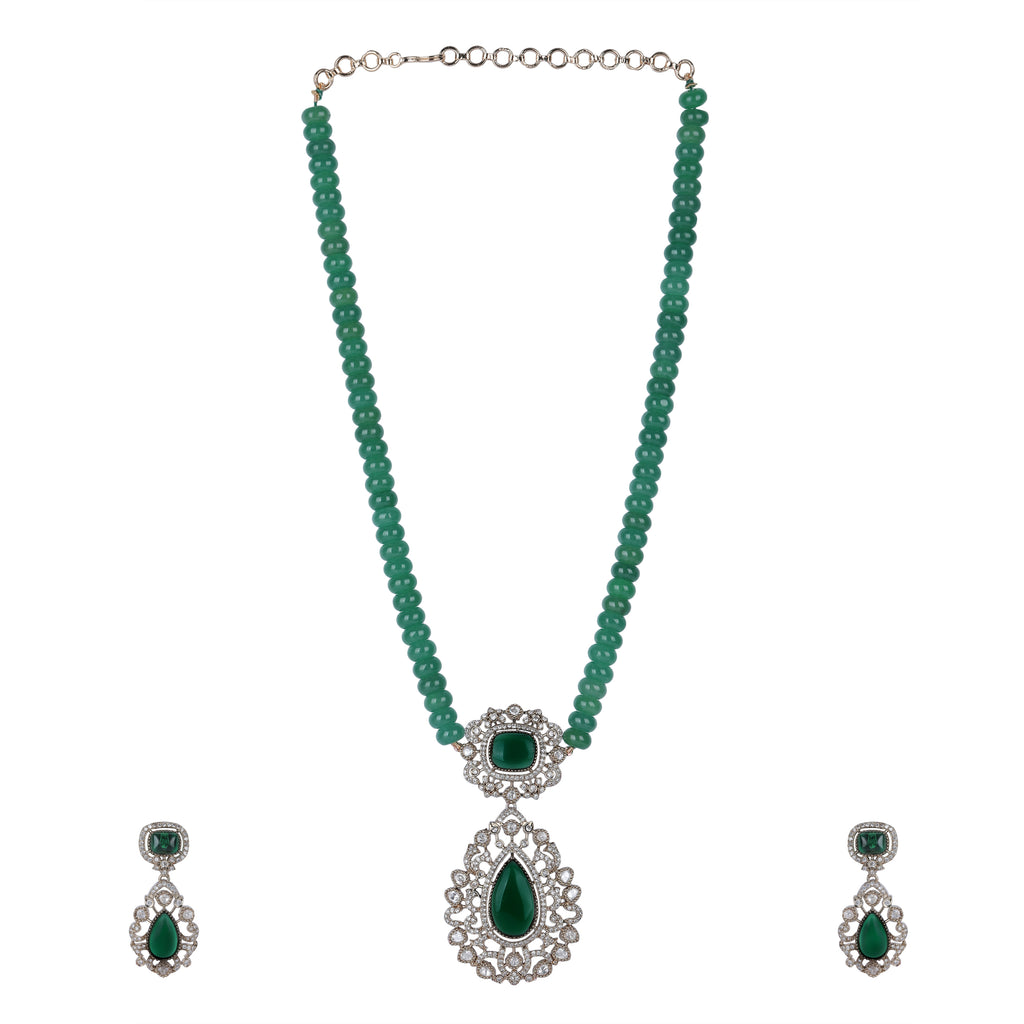 Details Size : Necklace L-10"Xw-.02" Earring L-0.7"XW-0.2" Stone Setting : zircon String(s) : Drop(s) : Finish : Gold Finding : ...