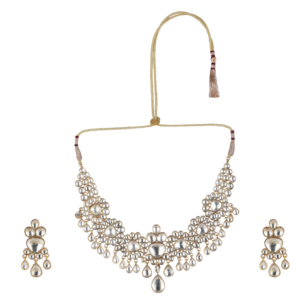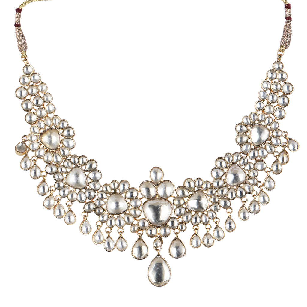 Details Size : Necklace L-11"XW-2" Earring L-2.5"XW-1.2" Stone Setting : Kundan String(s) : Drop(s) : Finish : Gold Finding : Hook Link...