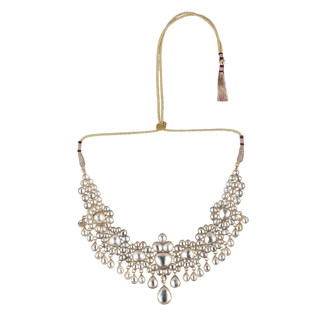 Details Size : Necklace L-16"XW-5.2" Earring L-2.6"XW-1.3" Stone Setting : Kundan String(s) : Drop(s) : Finish : Gold Finding : Dori &...