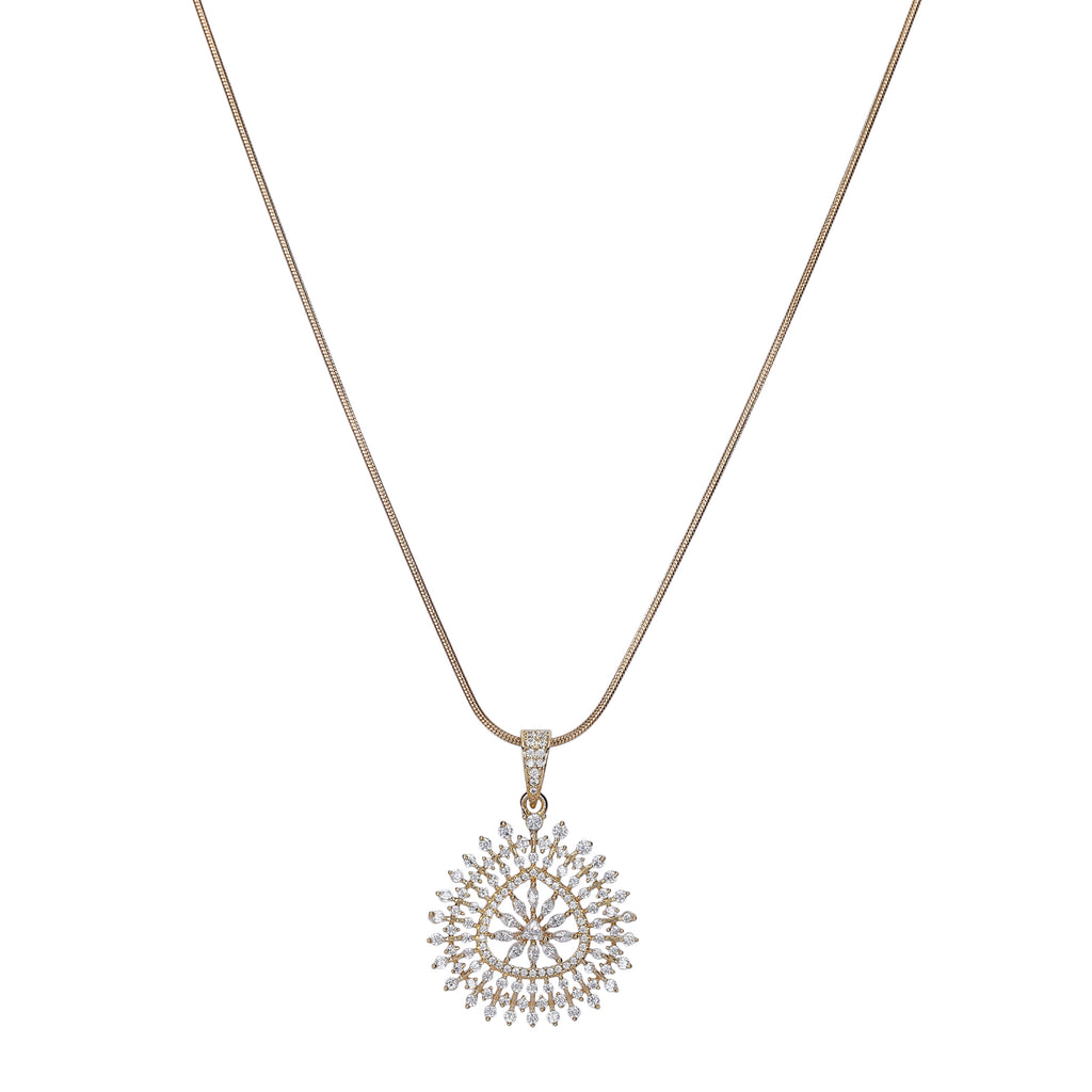 Details Size : Pendant L- 18"XW 0.7 " Earring L-0.3"XW .03" Stone Setting : Zircon String(s) : 22K Gold Plated Chain Drop(s) : Finish : 22K Gold plated Finding : Hook Link&Push Back Art Karat Jewelry is plated with 22k...