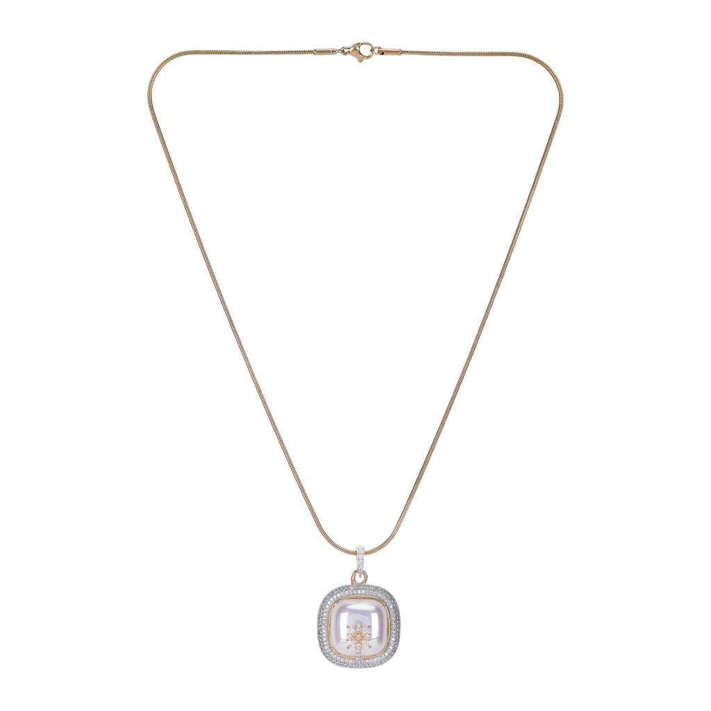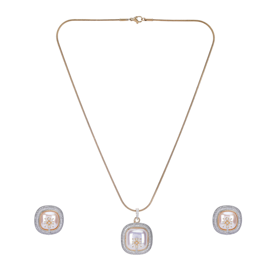 Details Size : Pendant L- 21"XW 1 " Earring L-2"XW .05" Stone Setting : Zircon String(s) : 22K Gold Plated Chain Drop(s)...