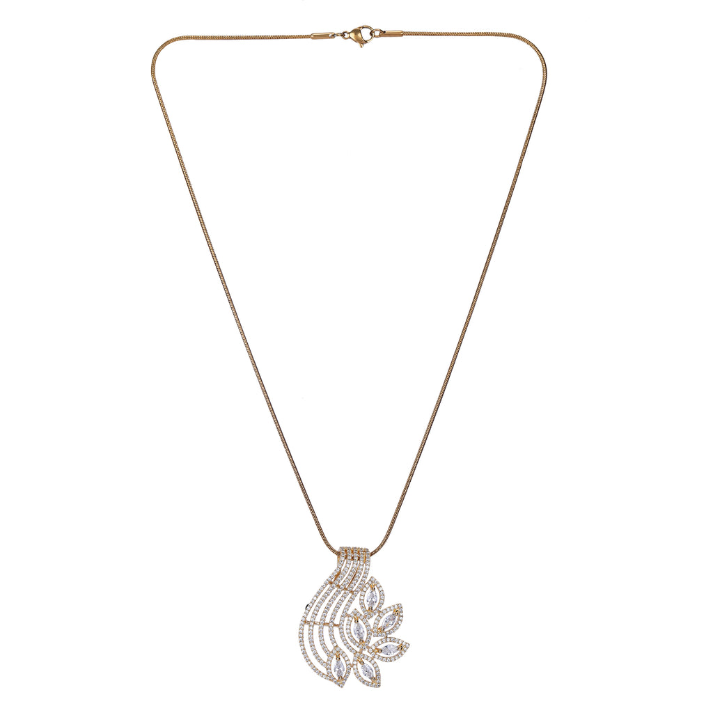 Details Size : Pendant L- 19"XW 0.8 " Earring L-0.7"XW .05" Stone Setting : Zircon String(s) : 22K Gold Plated Chain Drop(s) : Finish : 22K Gold plated Finding : Hook Link&Push Back Art Karat Jewelry is plated with 22k...
