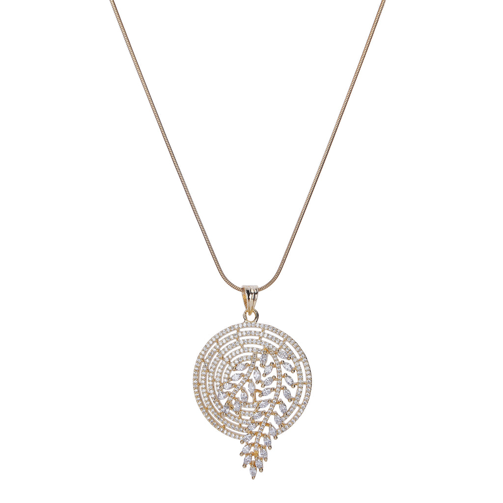 Details Size : Pendant L- 19"XW 0.8 " Earring L-0.7"XW .05" Stone Setting : Zircon String(s) : 22K Gold Plated Chain Drop(s) : Finish : 22K Gold plated Finding : Hook Link&Push Back Art Karat Jewelry is plated with 22k...