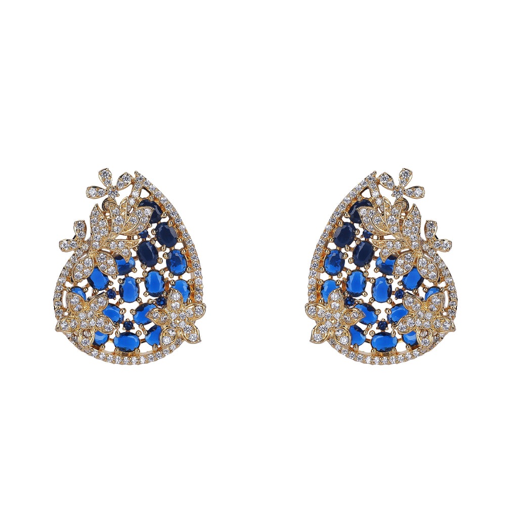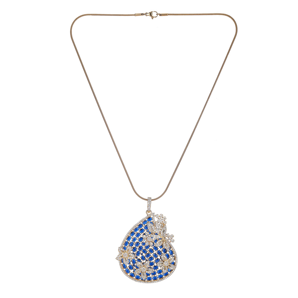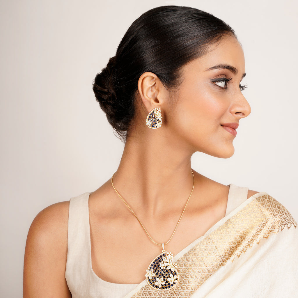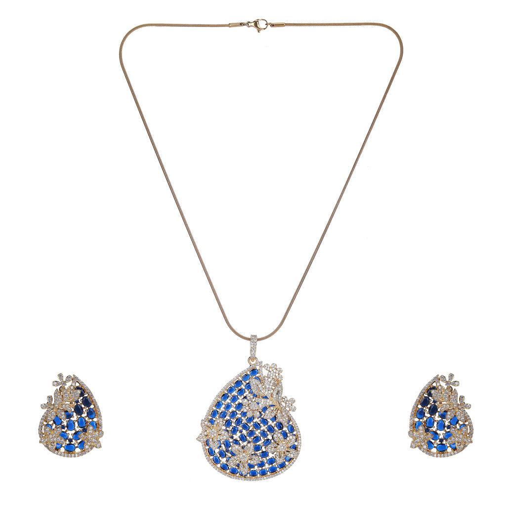 Details Size : Pendant L- 21"XW 1 " Earring L-2"XW .05" Stone Setting : Zircon String(s) : 22K Gold Plated Chain Drop(s)...