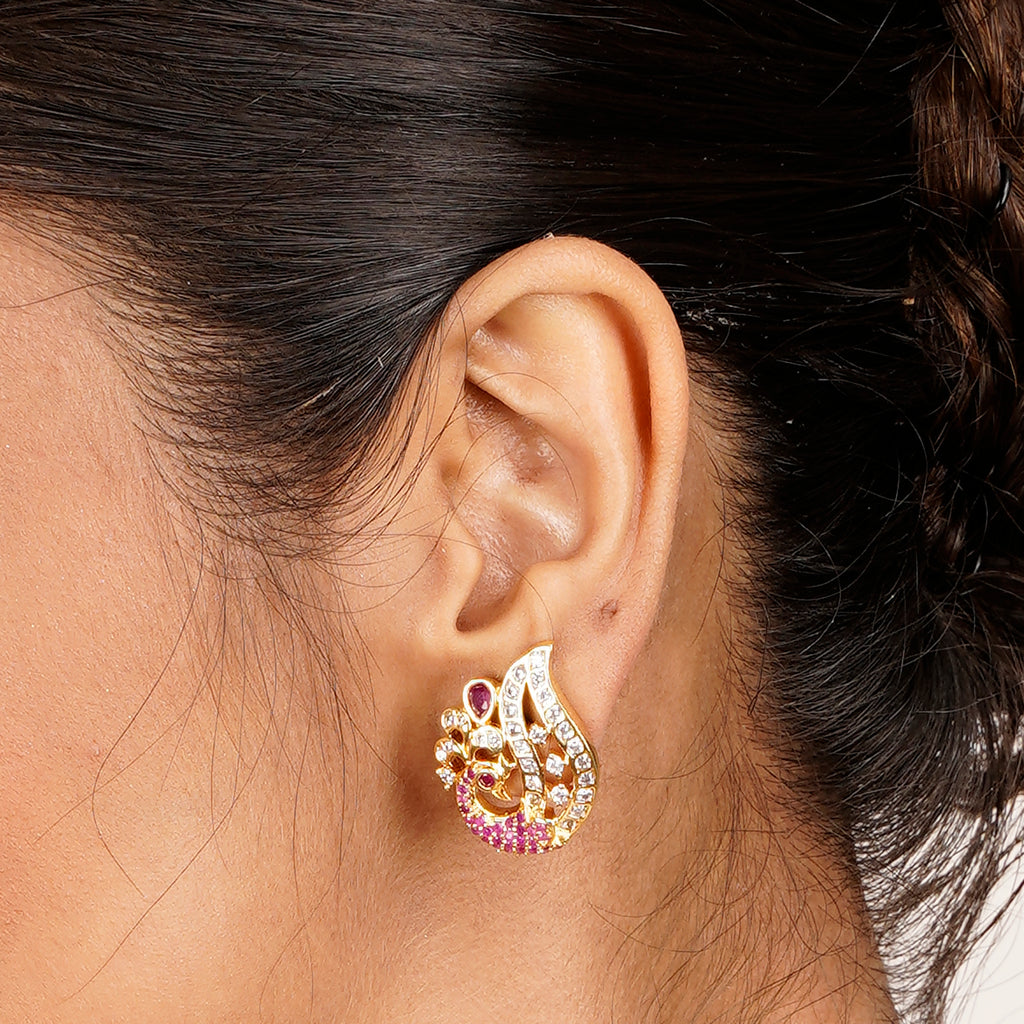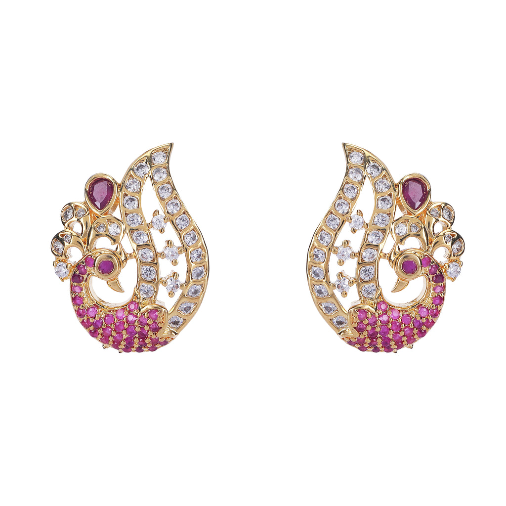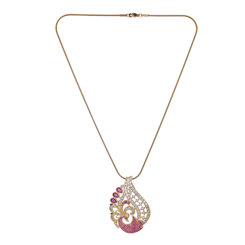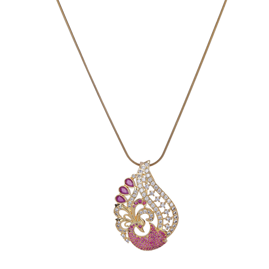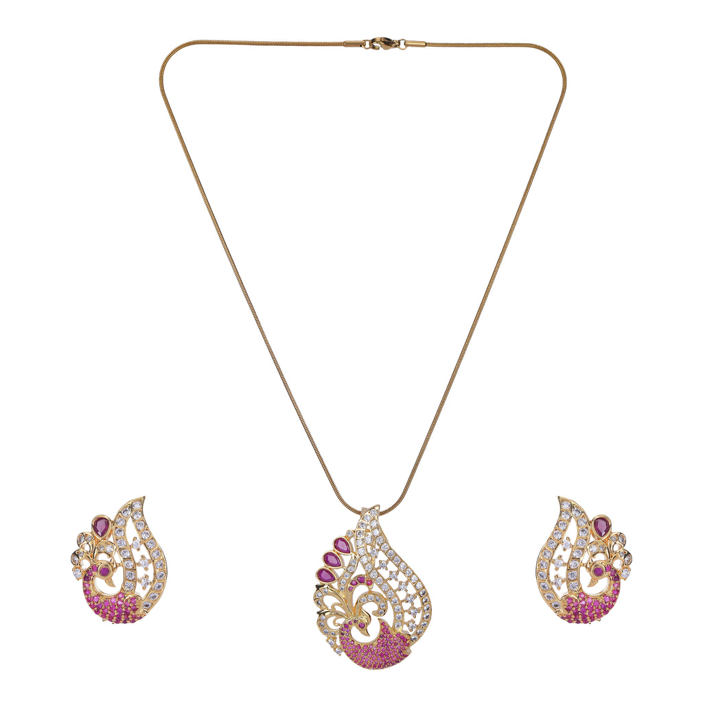 Details Size : Pendant L- 21"XW 1 " Earring L-2"XW .05" Stone Setting : Zircon String(s) : 22K Gold Plated Chain Drop(s)...