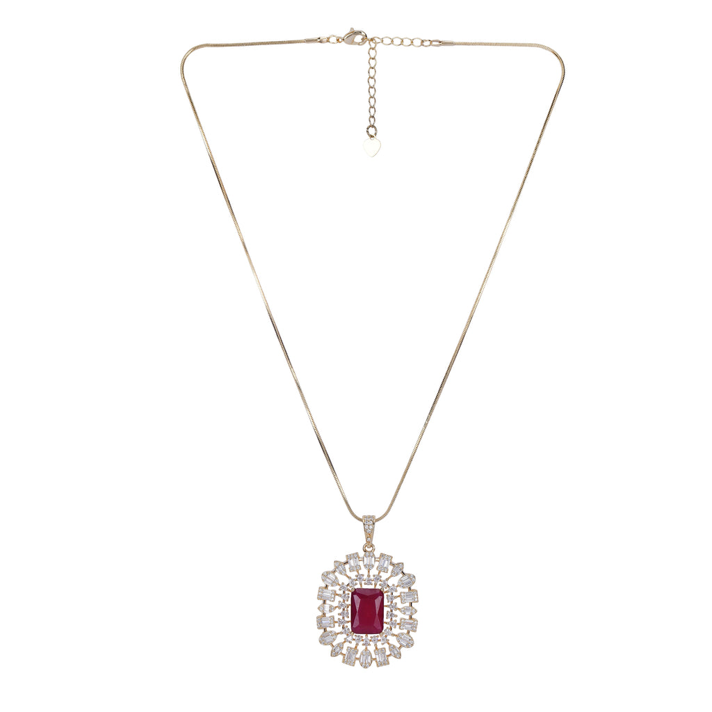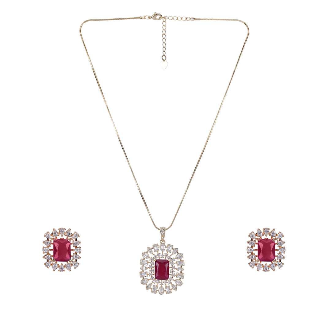 Details Size : Pendant L- 19"XW 0.8 " Earring L-0.7"XW .05" Stone Setting : Zircon String(s) : 22K Gold Plated Chain Drop(s)...