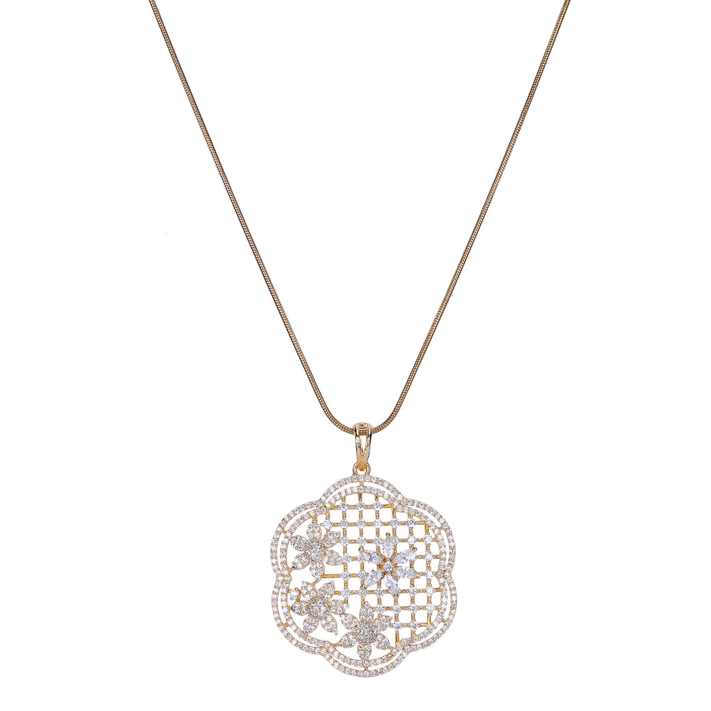 Details Size : Pendant L- 20"XW 1.3 " Earring L-0.8"XW .05" Stone Setting : Zircon String(s) : 22K Gold Plated Chain Drop(s) : Finish : 22K Gold plated Finding : Hook Link&Push Back Art Karat Jewelry is plated with 22k...