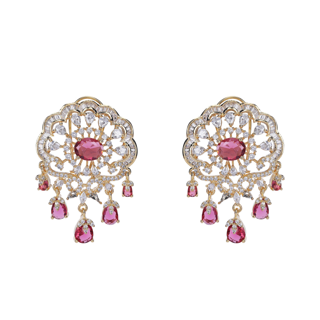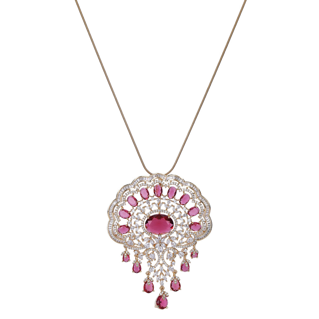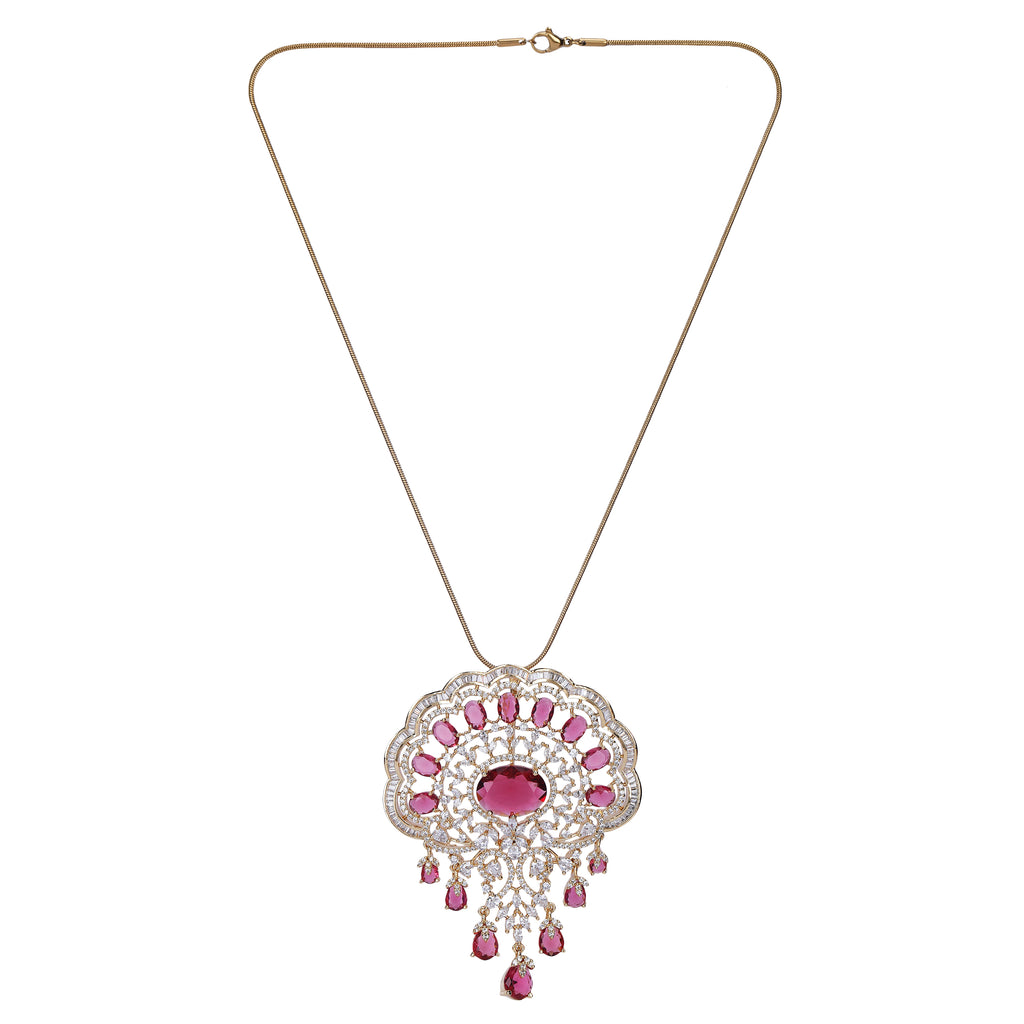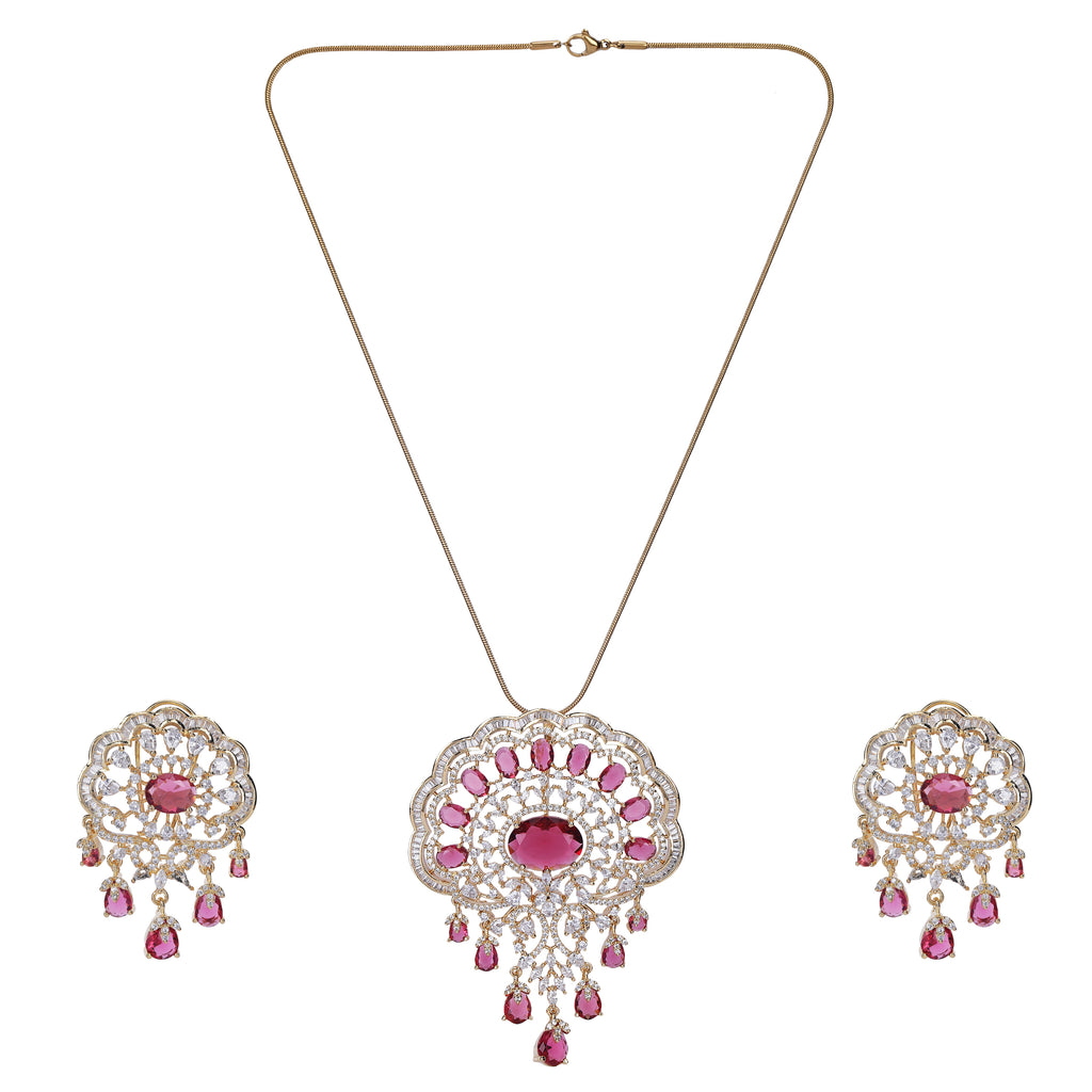 Details Size : Pendant L- 21"XW 1 " Earring L-2"XW .05" Stone Setting : Zircon String(s) : 22K Gold Plated Chain Drop(s)...