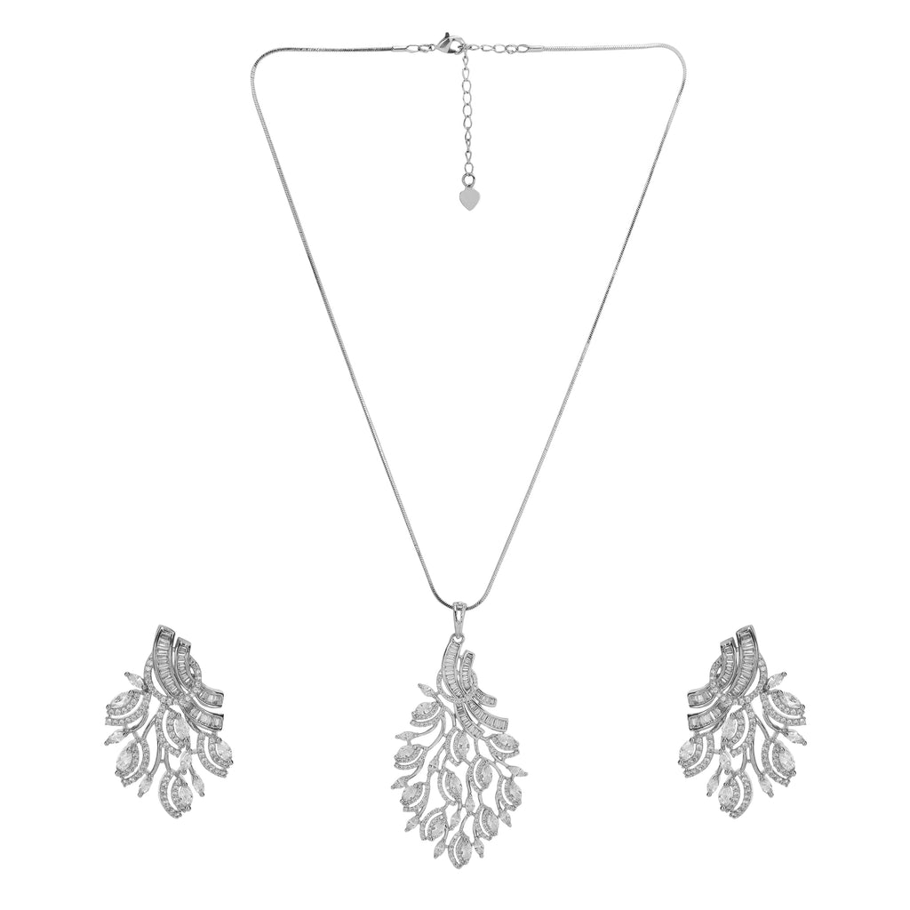 Details Size : Pendant L- 21"XW 1 " Earring L-2"XW .05" Stone Setting : Zircon String(s) : 22K Gold Plated Chain Drop(s)...