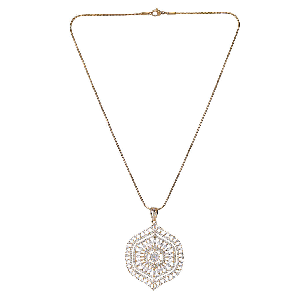Details Size : Pendant L- 18"XW 0.7 " Earring L-0.3"XW .03" Stone Setting : Zircon String(s) : 22K Gold Plated Chain Drop(s) : Finish : 22K Gold plated Finding : Hook Link&Push Back Art Karat Jewelry is plated with 22k...