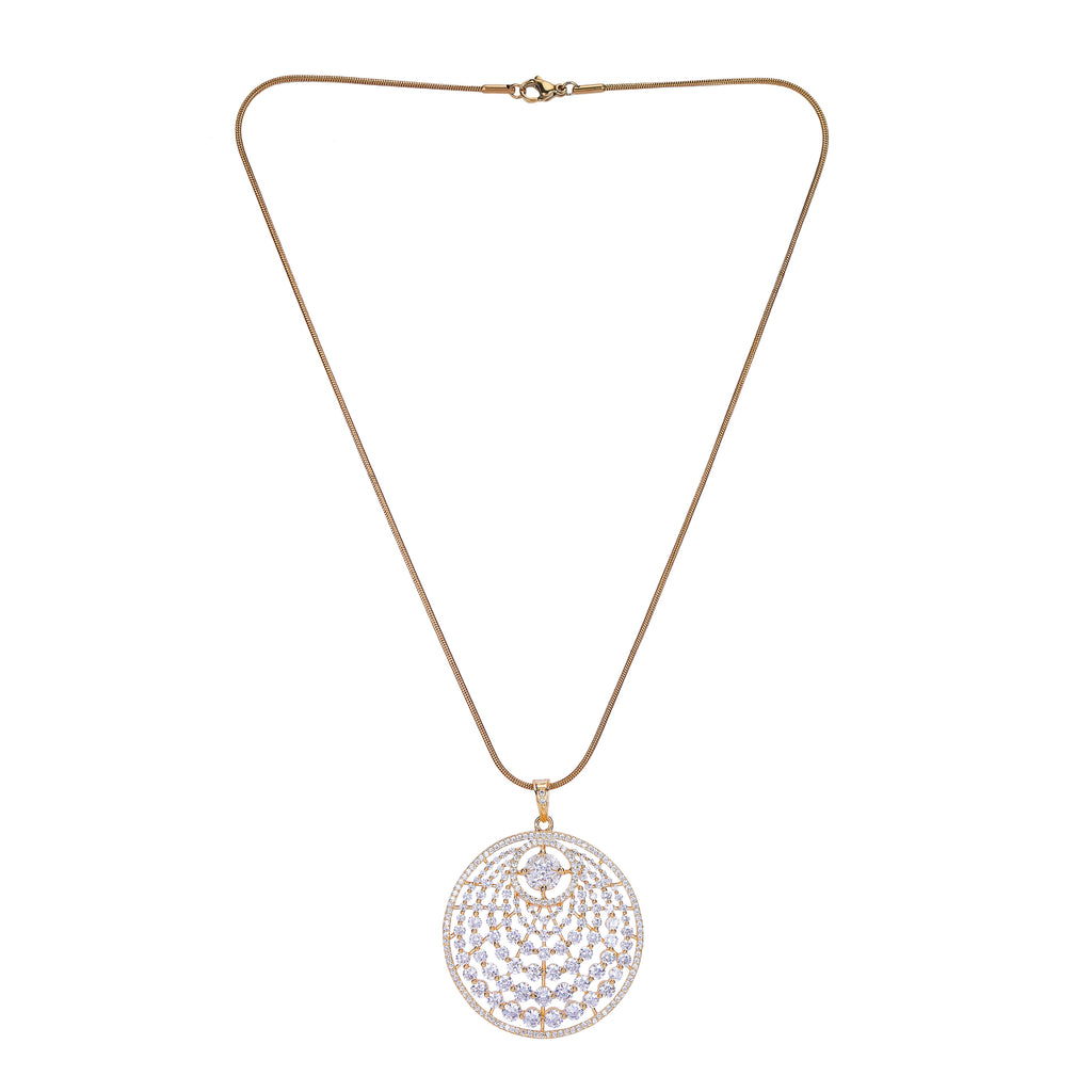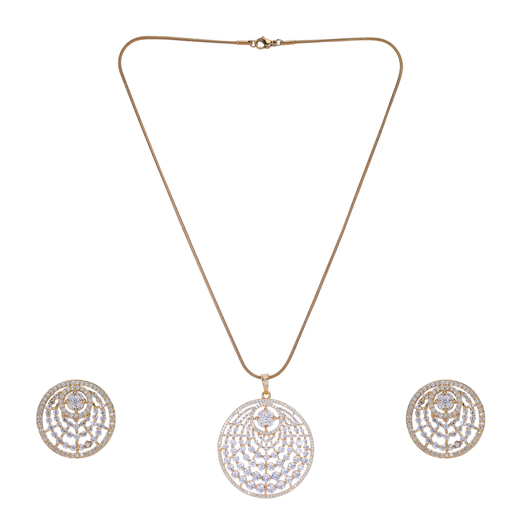 Details Size : Pendant L- 18"XW 0.7 " Earring L-0.3"XW .03" Stone Setting : Zircon String(s) : 22K Gold Plated Chain Drop(s) : Finish : 22K Gold plated Finding : Hook Link&Push Back Art Karat Jewelry is plated with 22k...