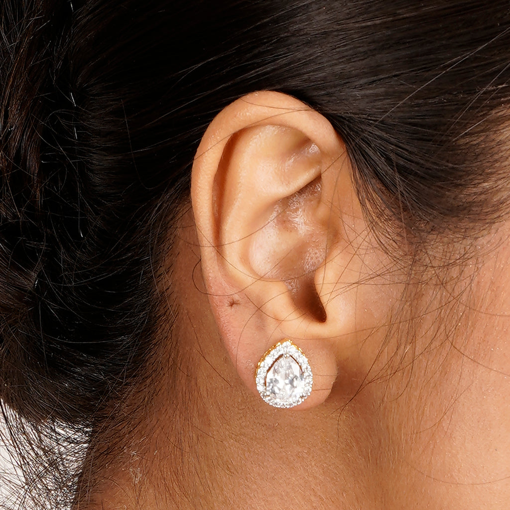 Details Size : Pendant L- 18"XW 0.8 " Earring L-0.5"XW .05" Stone Setting : Zircon String(s) : 22K Gold Plated Chain Drop(s)...
