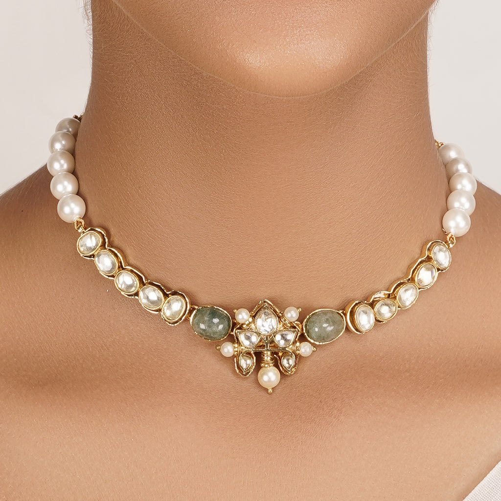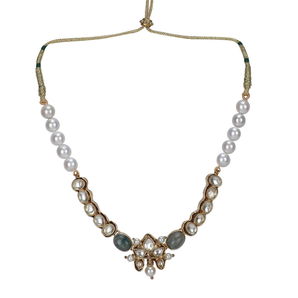 Details Size : Necklace L-21" X W-.1" Earring L-1.5"XW- 0.4" Stone Setting : Kundan String(s) : Taarmoti Drop(s) : Fresh Water Pearl...