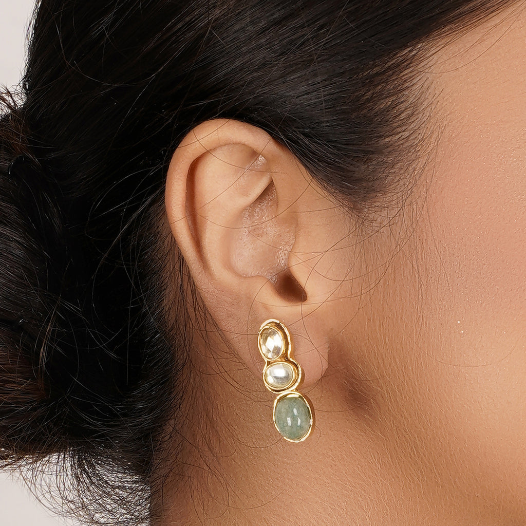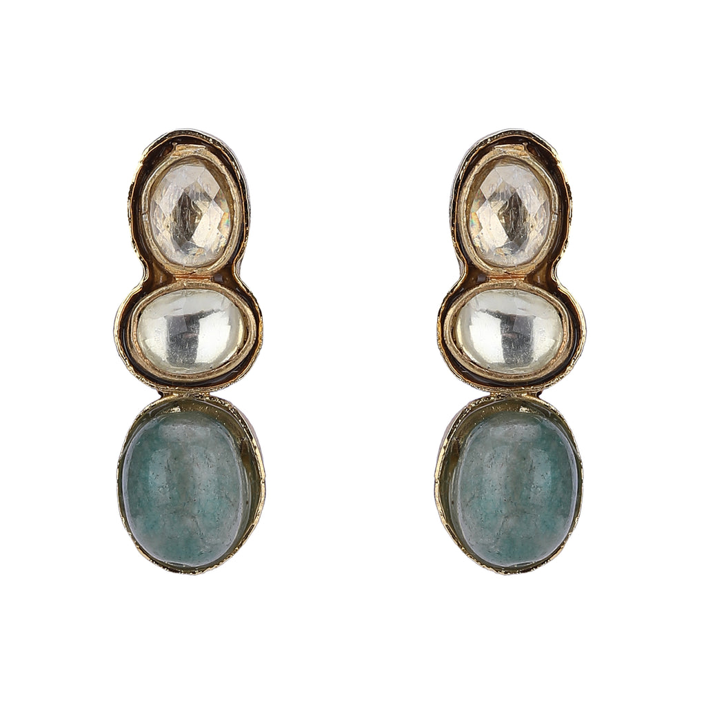 Details Size : Necklace L-14" X W-5" Earring L-7"XW-3" Stone Setting : Kundan String(s) : Tourmaline Drop(s) : Tourmaline Finish : 22K Gold Plated Finding : Dori&Push back Art Karat Jewelry is plated with 22k gold, studded with precious, semi-precious...