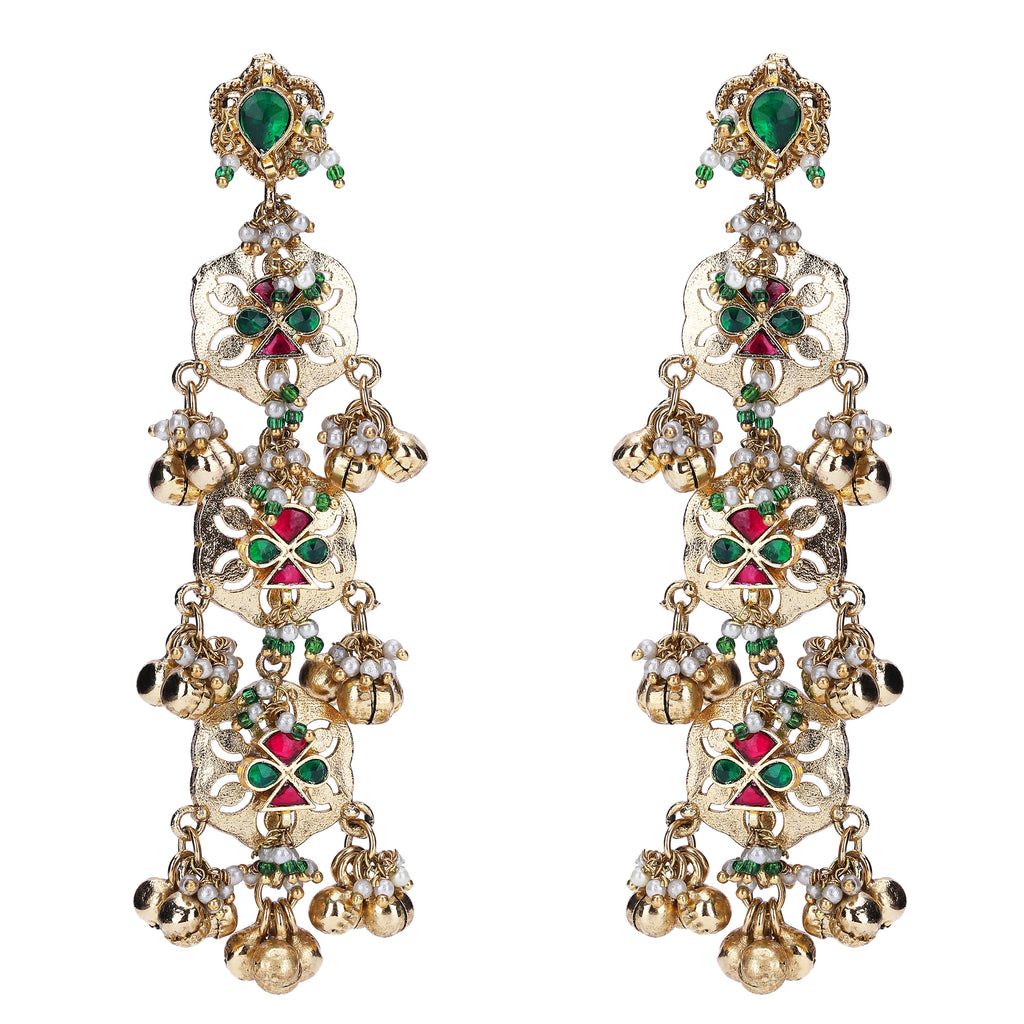 Details Size : Necklace L-14" X W-5" Earring L-7"XW-3" Stone Setting : Kundan String(s) : Tourmaline Drop(s) : Tourmaline Finish : 22K...