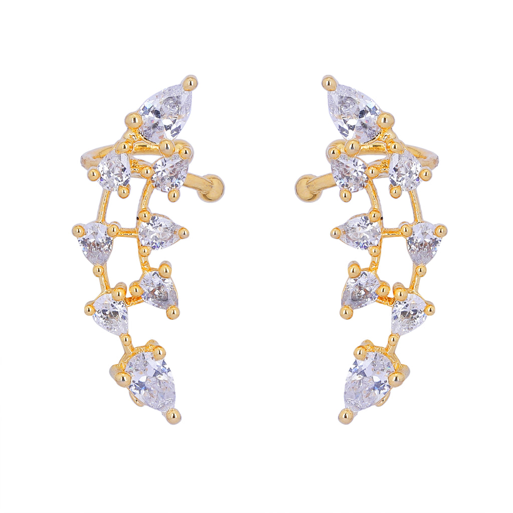 Details Size : Earring L-1.1"XW 0.2" Stone Setting : Zircon String(s) : Drop(s) : Finish : 22k Gold Plated Finding : Clips Art Karat Jewelry is plated with 22k gold, studded with precious, semi-precious and natural gemstones. We...
