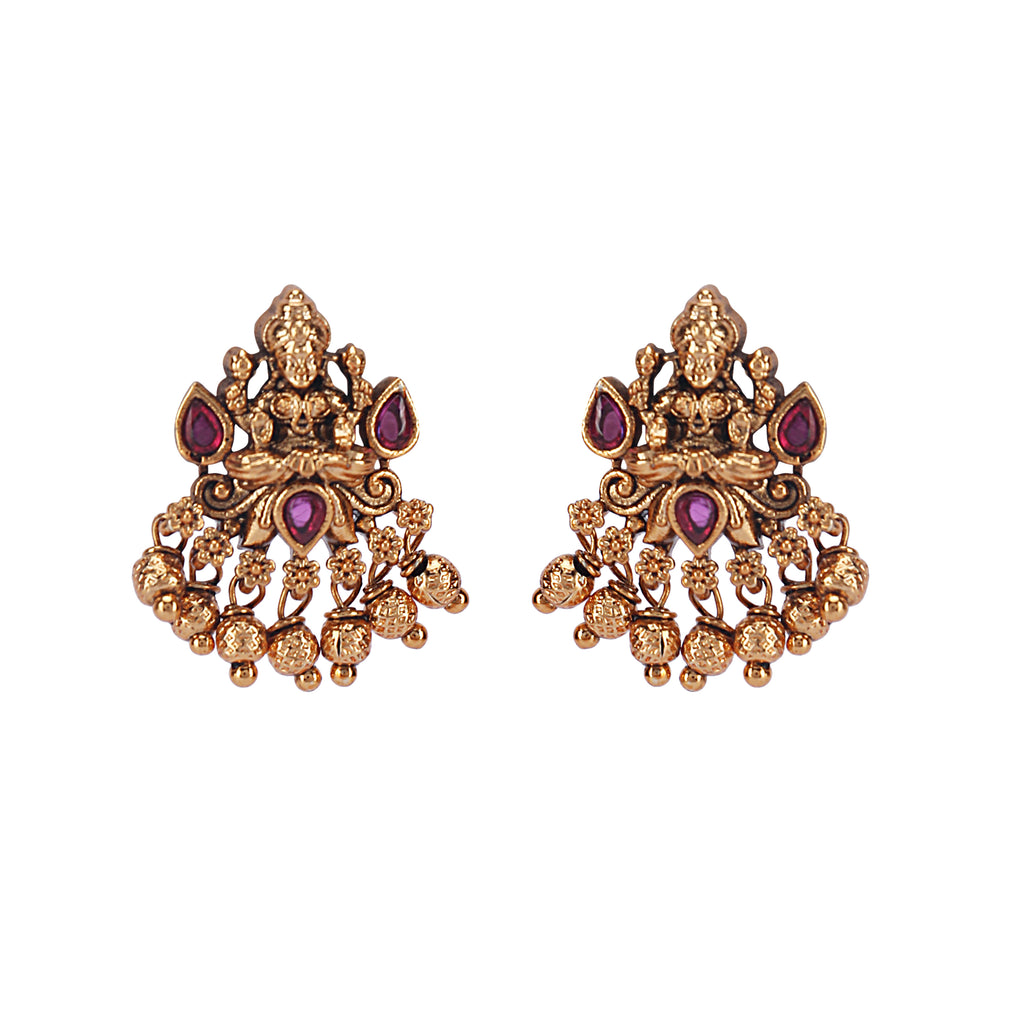 Details Size : Necklace L-9" X W-1" Earring L-1.2" X W-0.3" Stone Setting : Ruby String(s) : Drop(s) : Finish : Gold...