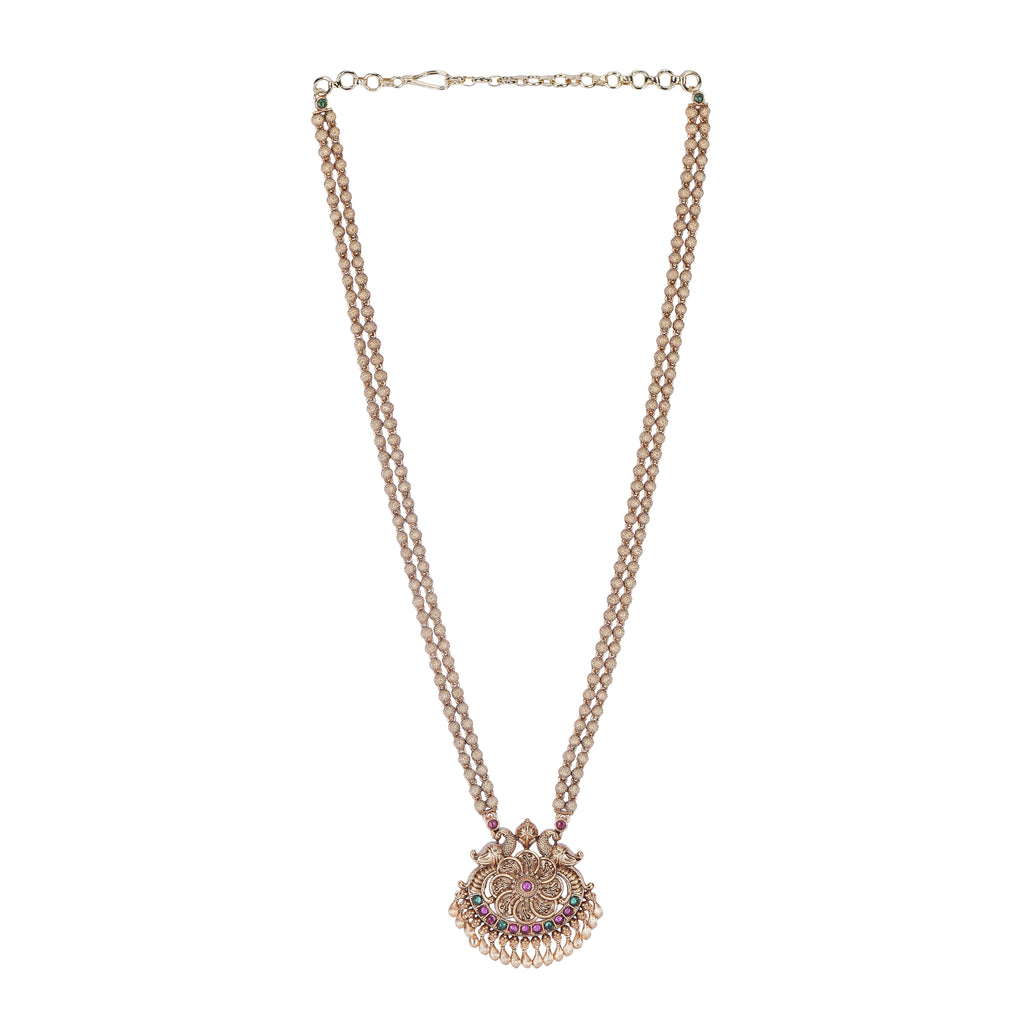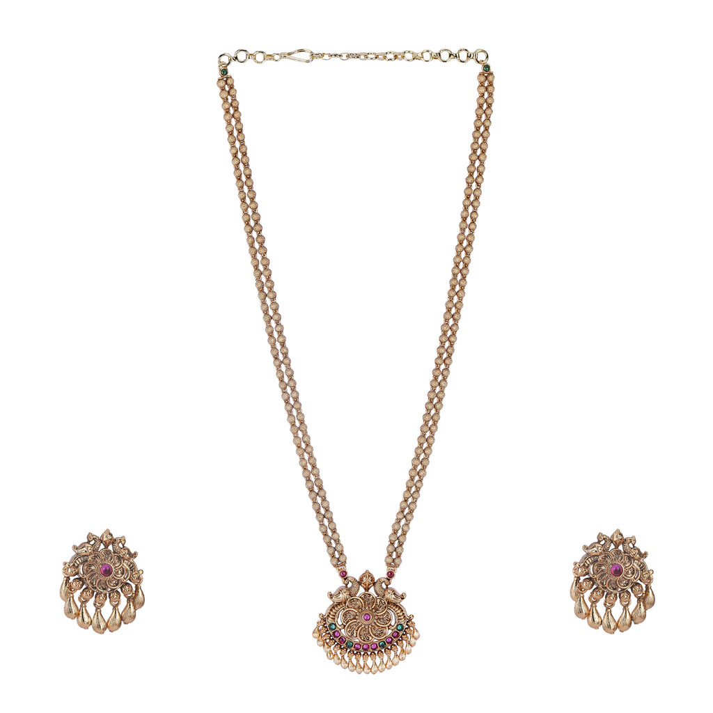 Details Size : Necklace L-18" X W-1.5" Earring L-0.6" X W-0.6" Stone Setting : String(s) : Gold Bead Drop(s) : Finish :...