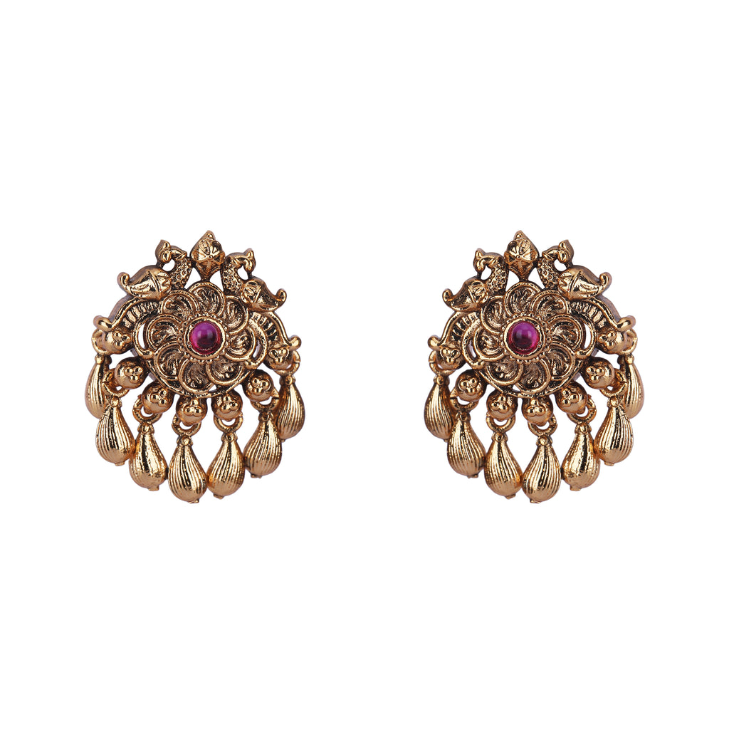 Details Size : Necklace L-9" X W-1" Earring L-1.2" X W-0.3" Stone Setting : Ruby String(s) : Drop(s) : Finish : Gold Plated Finding : Dori &Push Back Art Karat Jewelry is plated with 22k gold, studded with precious, semi-precious...