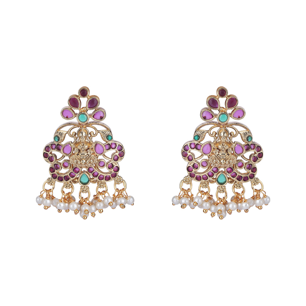 Details Size : Necklace L-23" X W-2" Earring L-1.5" X W-0.8" Stone Setting : Ruby String(s) : Drop(s) : Fresh Water Pearl Finish : Gold Plated Finding : Hook Link& Push Back Art Karat Jewelry is plated with 22k gold,...