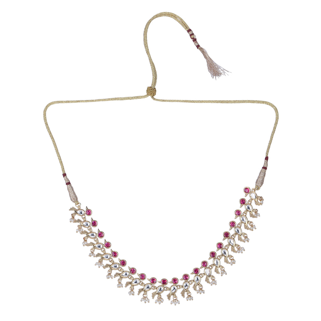 Details Size : Necklace L-9" X W-1" Earring L-1.2" X W-0.3" Stone Setting : Ruby String(s) : Drop(s) : Finish : Gold Plated Finding : Dori &Push Back Art Karat Jewelry is plated with 22k gold, studded with precious, semi-precious...