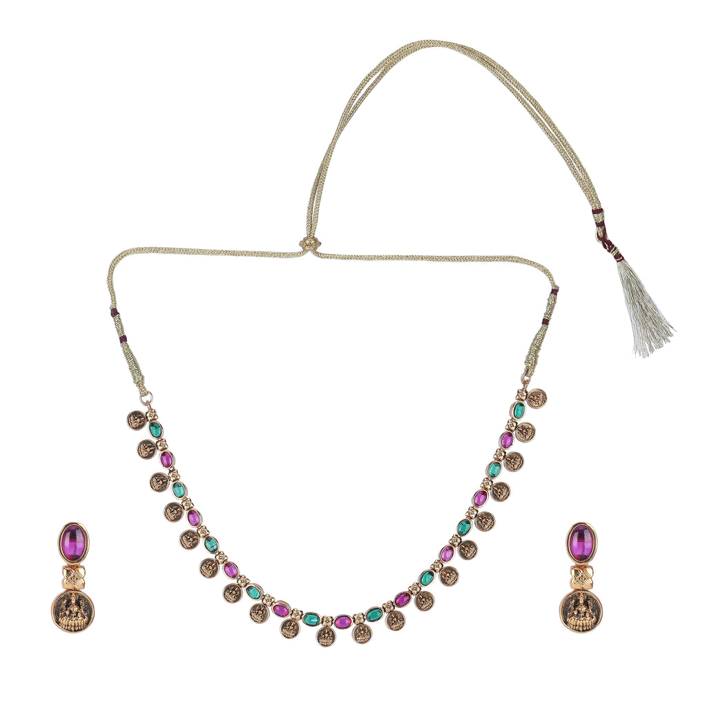 Details Size : Necklace L-18" X W-.5" Earring L-1.3" X W-0.5" Stone Setting : String(s) : Drop(s) : Finish : Gold Plated Finding : Art Karat Jewelry is plated with 22k gold, studded with precious, semi-precious and natural gemstones. We...