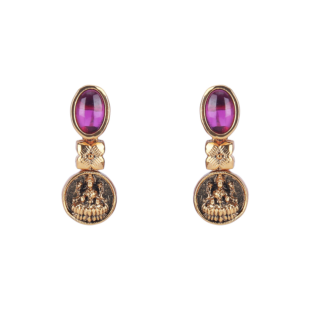 Details Size : Necklace L-9" X W-1" Earring L-1.2" X W-0.3" Stone Setting : Ruby String(s) : Drop(s) : Finish : Gold...