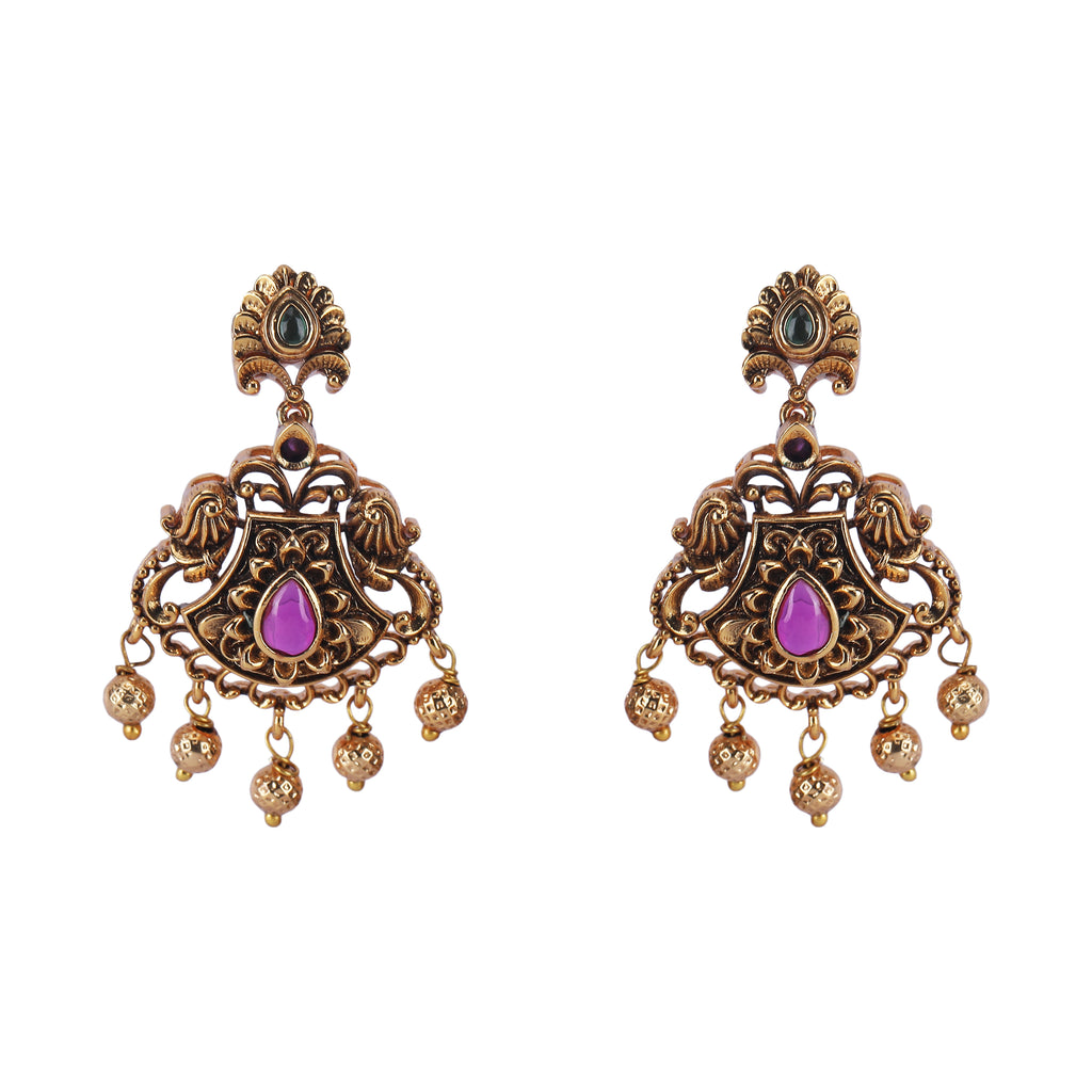 Details Size : Necklace L-21" X W-1.6" Earring L-1.3" X W-0.8" Stone Setting : Ruby String(s) : Drop(s) : Finish : Gold Plated Finding : Hook Link& Push Back Art Karat Jewelry is plated with 22k gold, studded with precious,...