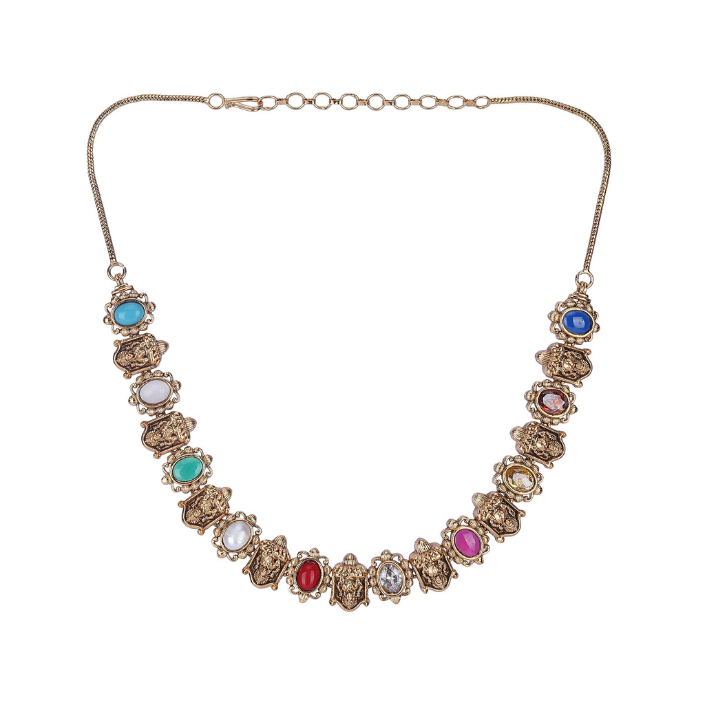 Details Size : Necklace L-18" X W-.5" Earring L-1.3" X W-0.5" Stone Setting : String(s) : Drop(s) : Finish : Gold Plated Finding : Art Karat Jewelry is plated with 22k gold, studded with precious, semi-precious and natural gemstones. We...