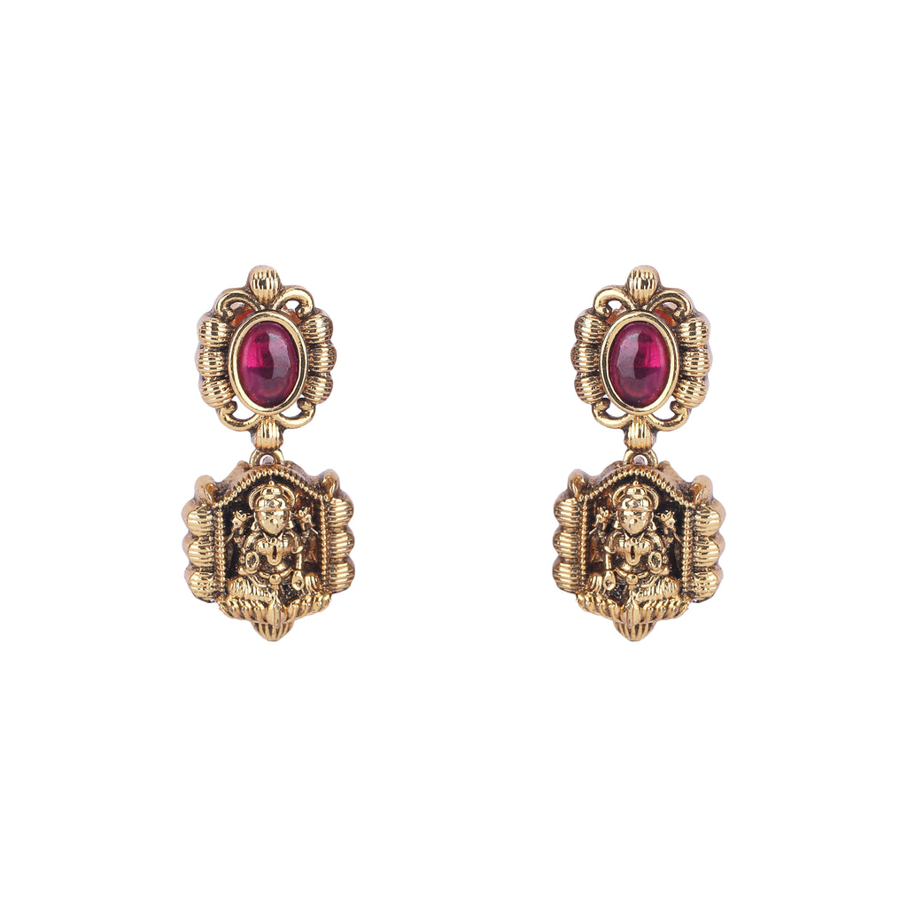 Details Size : Necklace L-21" X W-1.6" Earring L-1.3" X W-0.8" Stone Setting : Ruby String(s) : Drop(s) : Finish : Gold Plated Finding : Hook Link& Push Back Art Karat Jewelry is plated with 22k gold, studded with precious,...