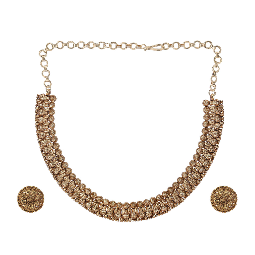 Details Size : Necklace L-8" X W-0.5" Earring L-0.7" X W-0.7" Stone Setting : String(s) : Drop(s) : Finish : Gold Plated Finding : Hook Link& Push Back Art Karat Jewelry is plated with 22k gold, studded with precious, semi-precious...