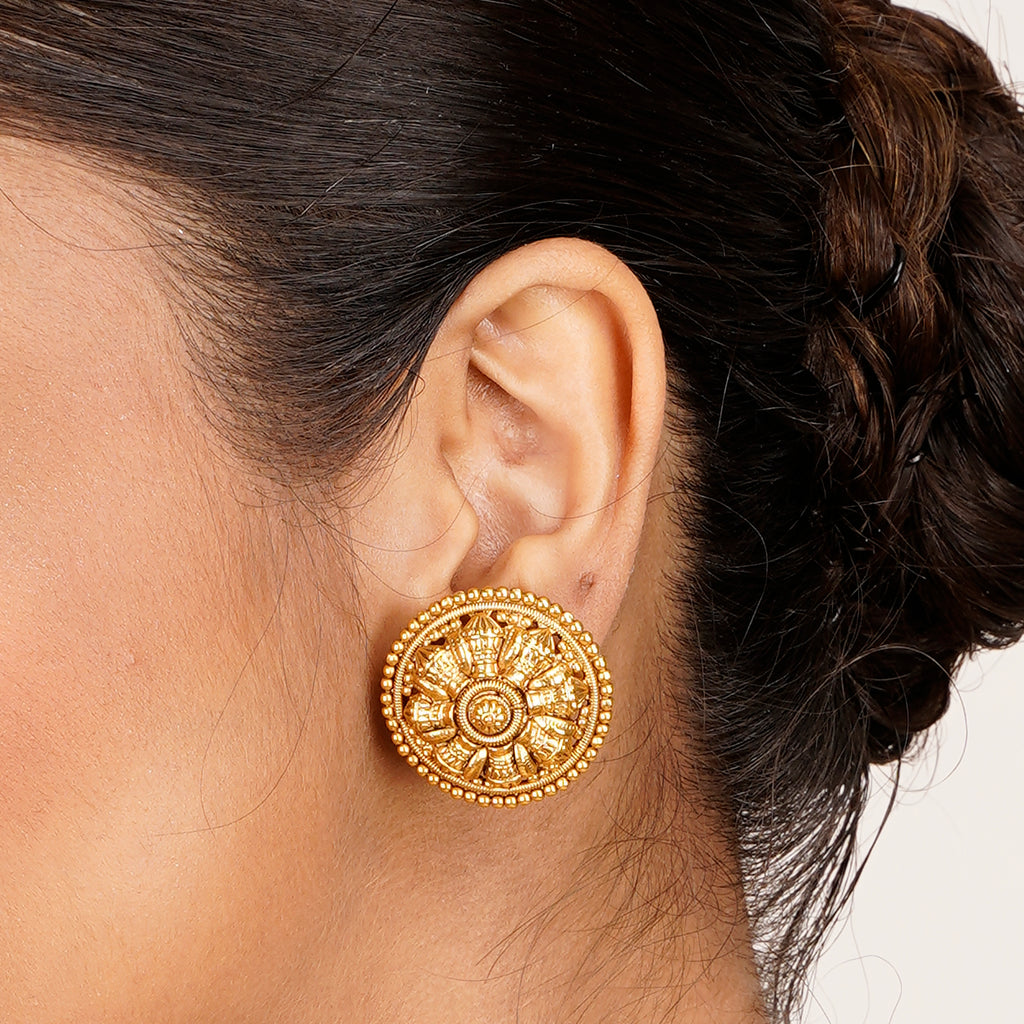 Details Size : Necklace L-18" X W-1.5" Earring L-0.6" X W-0.6" Stone Setting : String(s) : Gold Bead Drop(s) : Finish : Gold Plated Finding : hook Link& Push Back Art Karat Jewelry is plated with 22k gold, studded with...