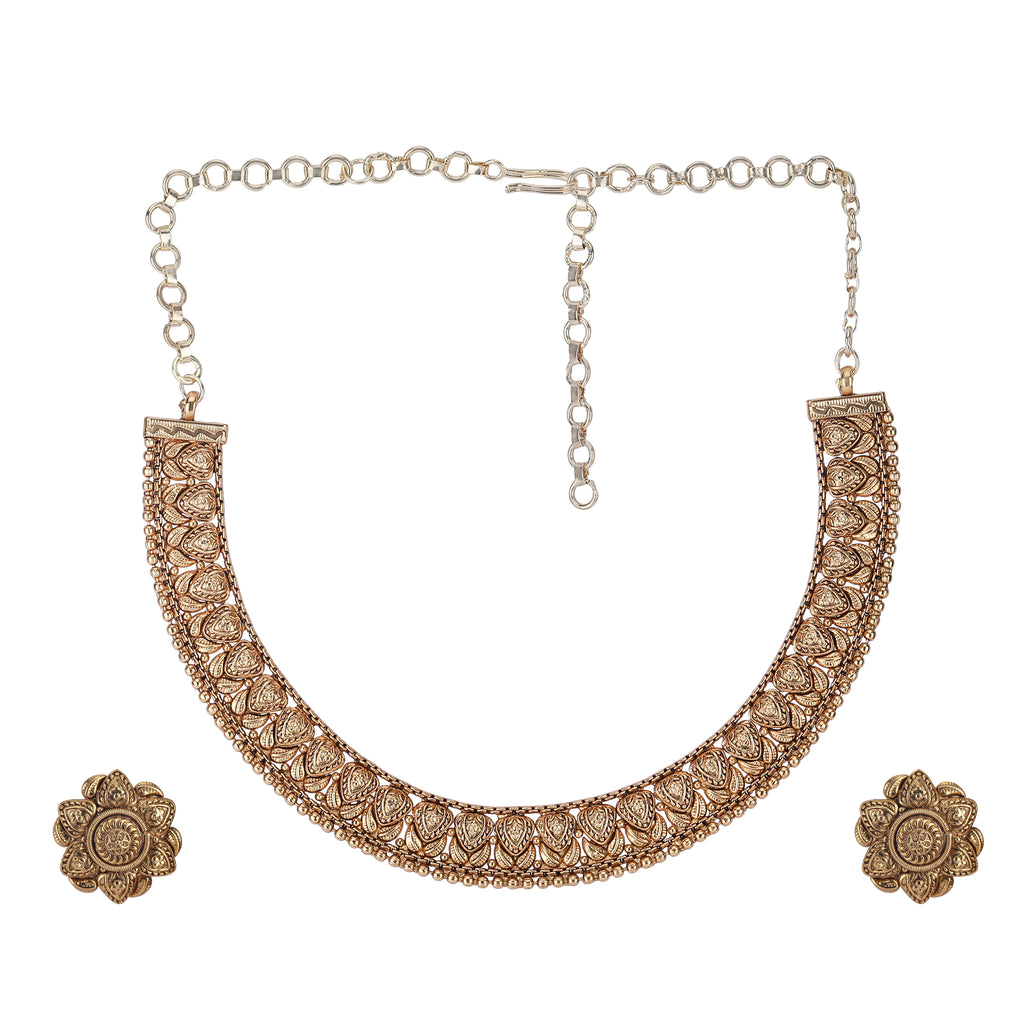 Details Size : Necklace L-20" X W-1.5" Earring L-0.8" X W-0.6" Stone Setting : String(s) : chain Drop(s) : Finish : Gold Plated Finding : Hook Link& Push Back Art Karat Jewelry is plated with 22k gold, studded with precious,...
