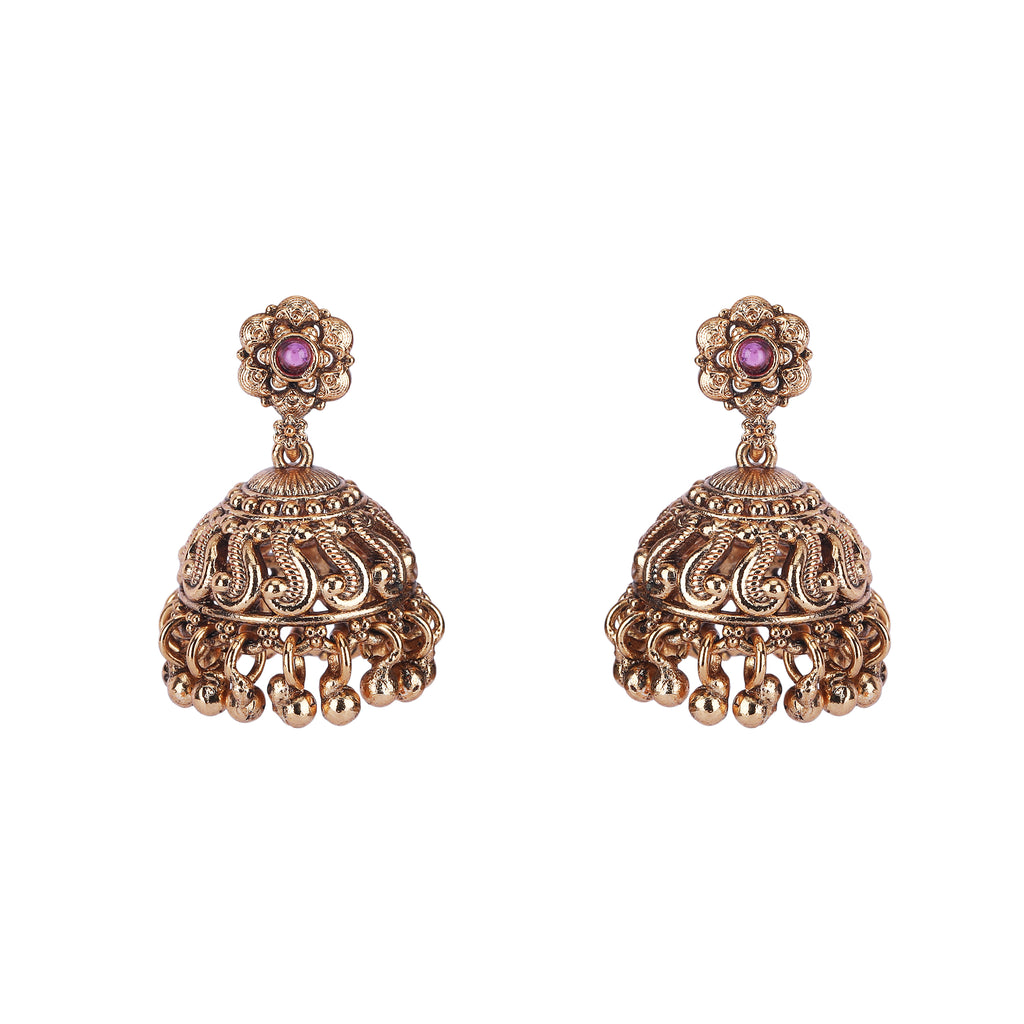 Details Size : Necklace L-21" X W-1.6" Earring L-1.3" X W-0.8" Stone Setting : Ruby String(s) : Drop(s) : Finish : Gold Plated Finding : Hook Link& Push Back Art Karat Jewelry is plated with 22k gold, studded with precious,...