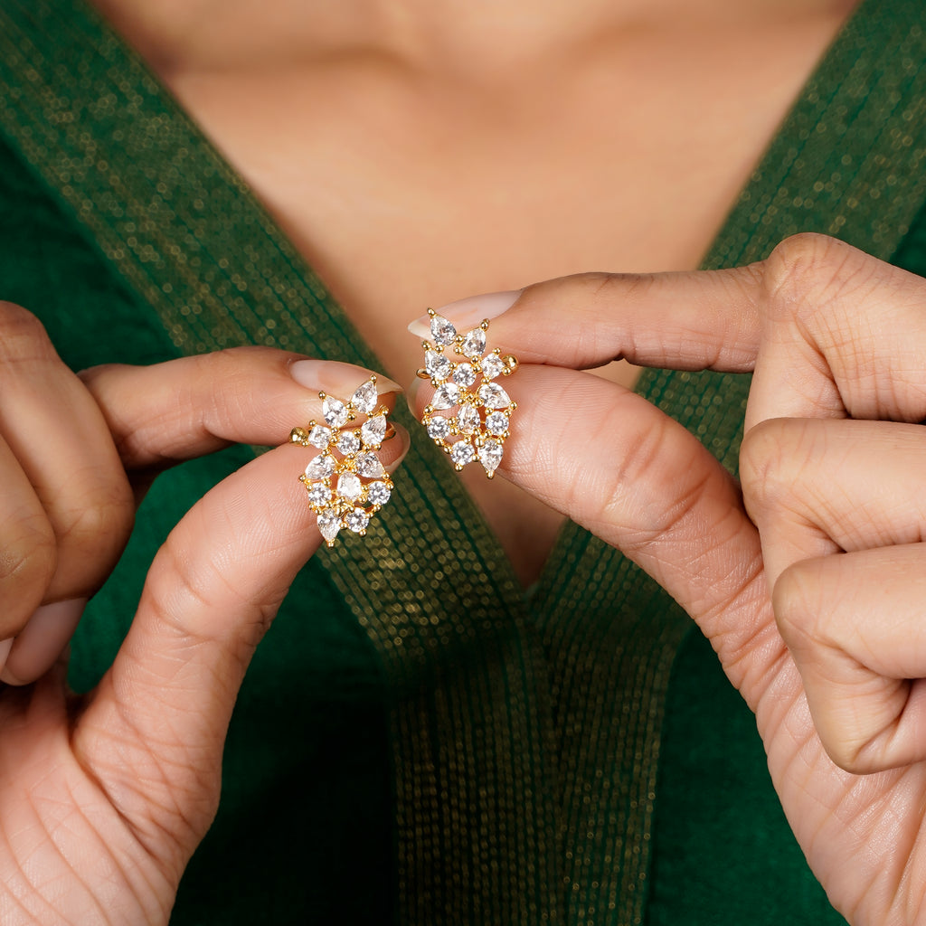 Details Size : Earring L-0.6"XW 0.4" Stone Setting : Zircon String(s) : Drop(s) : Finish : 22k Gold Plated Finding...