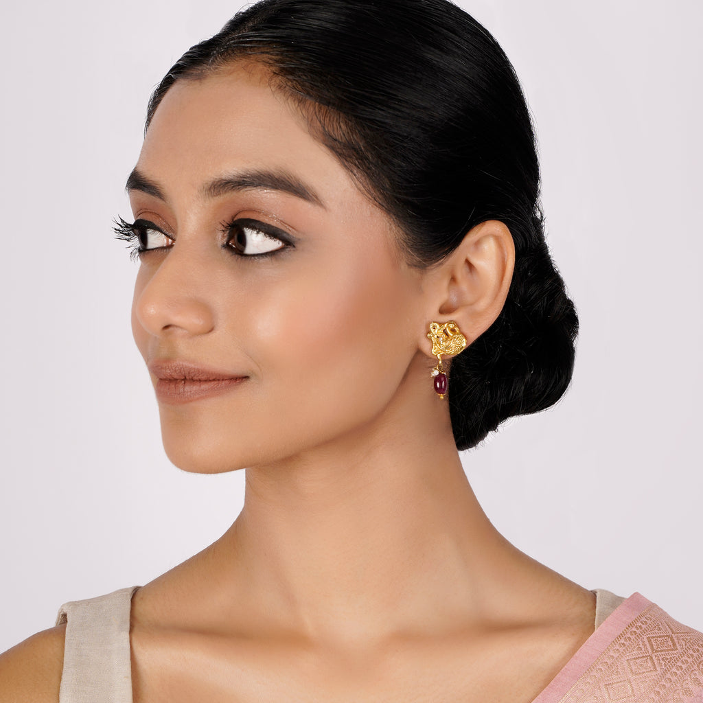 Details Size : Earring L- 1.3" XW-.07" Stone Setting : Kundan String(s) : Drop(s) : Gold Bead Finish : 22K Gold Plated Finding : Push Back Art Karat Jewelry is plated with 22k gold, studded with precious, semi-precious and natural...