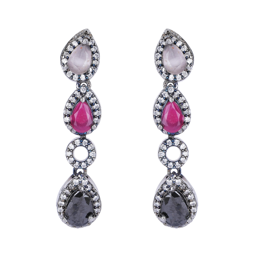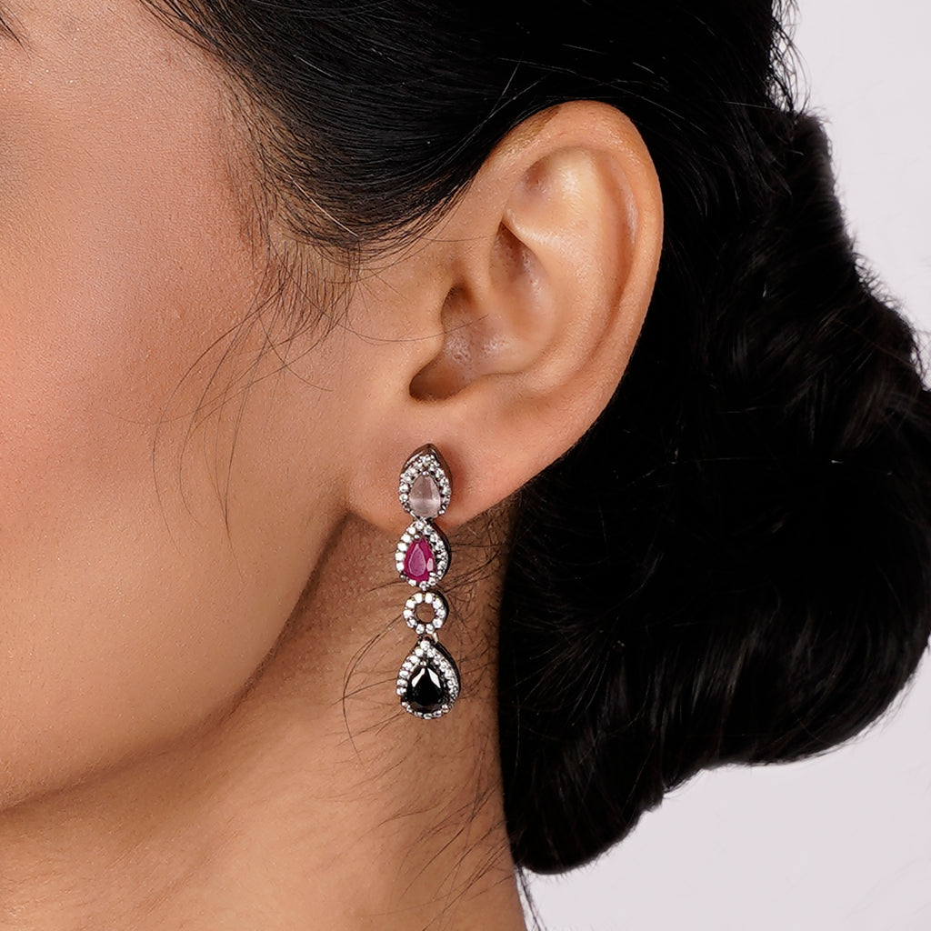 Details Size : Earring L- 2.3" XW-.05" Stone Setting : String(s) : Drop(s) : Finish : Gold /Silver Finding : Push Back Art Karat Jewelry is plated with 22k gold, studded with precious, semi-precious and natural gemstones. We offer a...