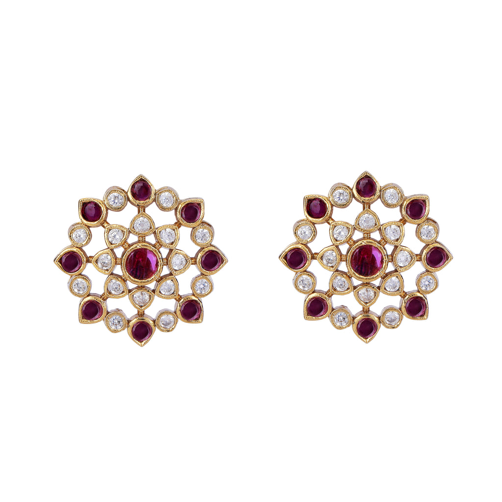 Details Size : Earring L- 2" XW-.05" Stone Setting : Ruby String(s) : Drop(s) : Finish : 22K Gold Plated Finding : Push Back Art Karat Jewelry is plated with 22k gold, studded with precious, semi-precious and natural gemstones. We...