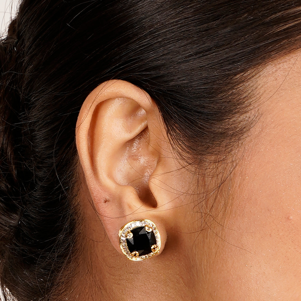 Details Size : Necklace - L20" XW1.3" Earring -L0.5" XW0.3" Stone Setting : Zircon String(s) : Gold Chain Drop(s) : Green Onyx Finish : 22K Gold Plated Finding : Hook Link & Push Back Art Karat Jewelry is plated with...