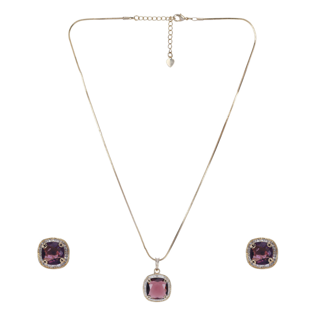Details Size : Pendant L- 18"XW 0.8 " Earring L-0.6"XW .06" Stone Setting : Zircon String(s) : 22K Gold Plated Chain Drop(s)...
