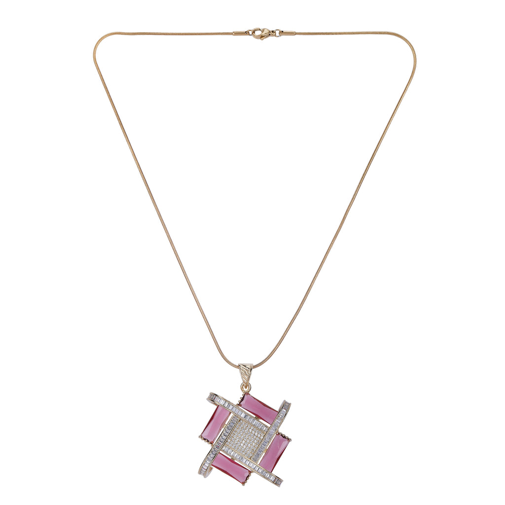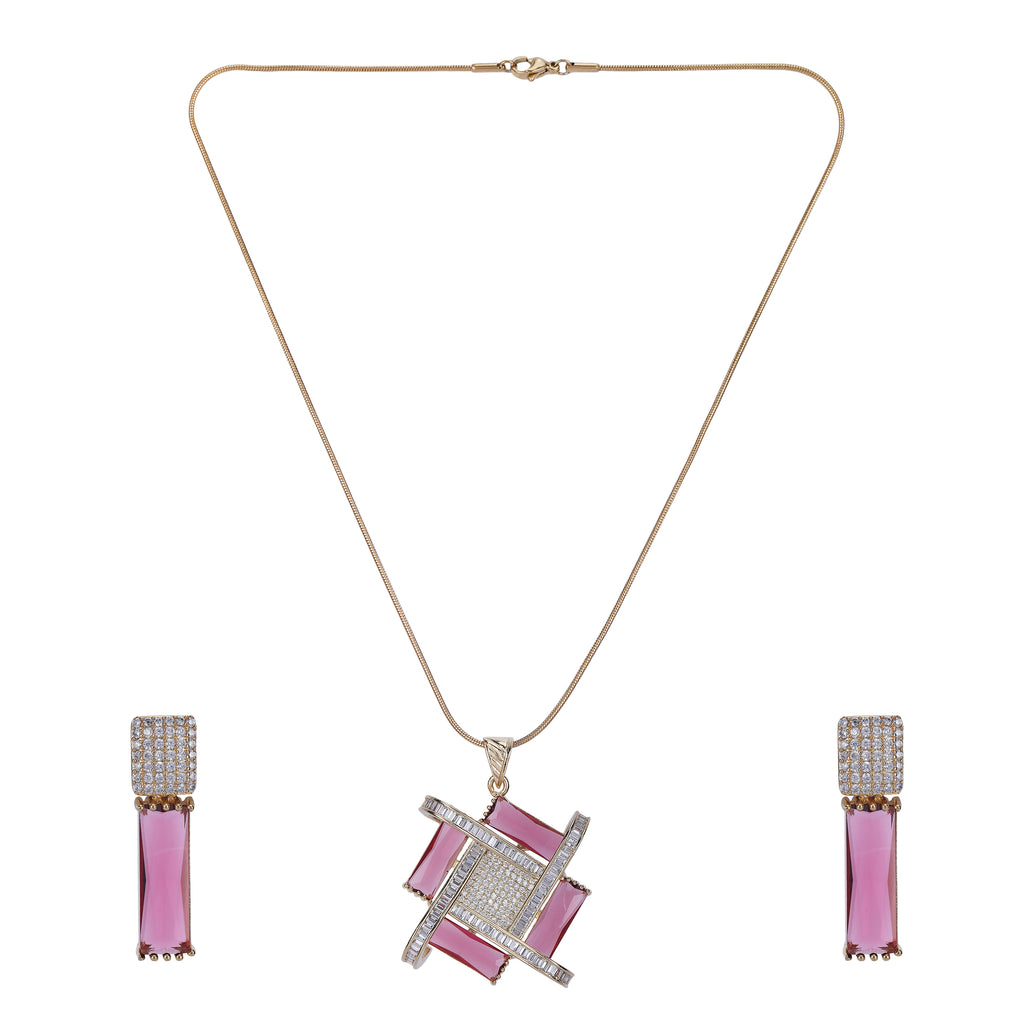 Details Size : Necklace - L20" XW0.5" Earring -L0.5" XW.05" Stone Setting : Zircon String(s) : Gold Chain Drop(s) : Ruby Finish...
