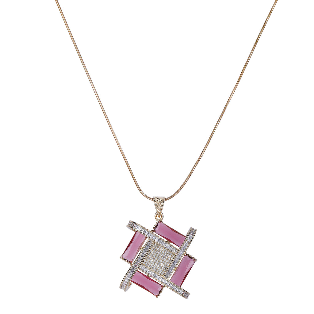 Details Size : Necklace - L20" XW0.5" Earring -L0.5" XW.05" Stone Setting : Zircon String(s) : Gold Chain Drop(s) : Ruby Finish : 22K Gold Plated Finding : Hook Link & Push Back Art Karat Jewelry is plated with 22k...