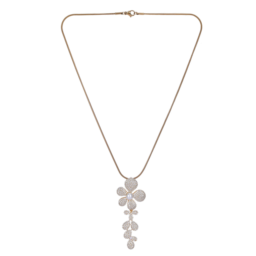 Details Size : Necklace - L20" XW1" Earring -L0.8" XW0.5" Stone Setting : Zircon String(s) : Gold Chain Drop(s) : Fresh Water Pearl Finish : 22K Gold Plated Finding : Hook Link & Push Back Art Karat Jewelry is plated...