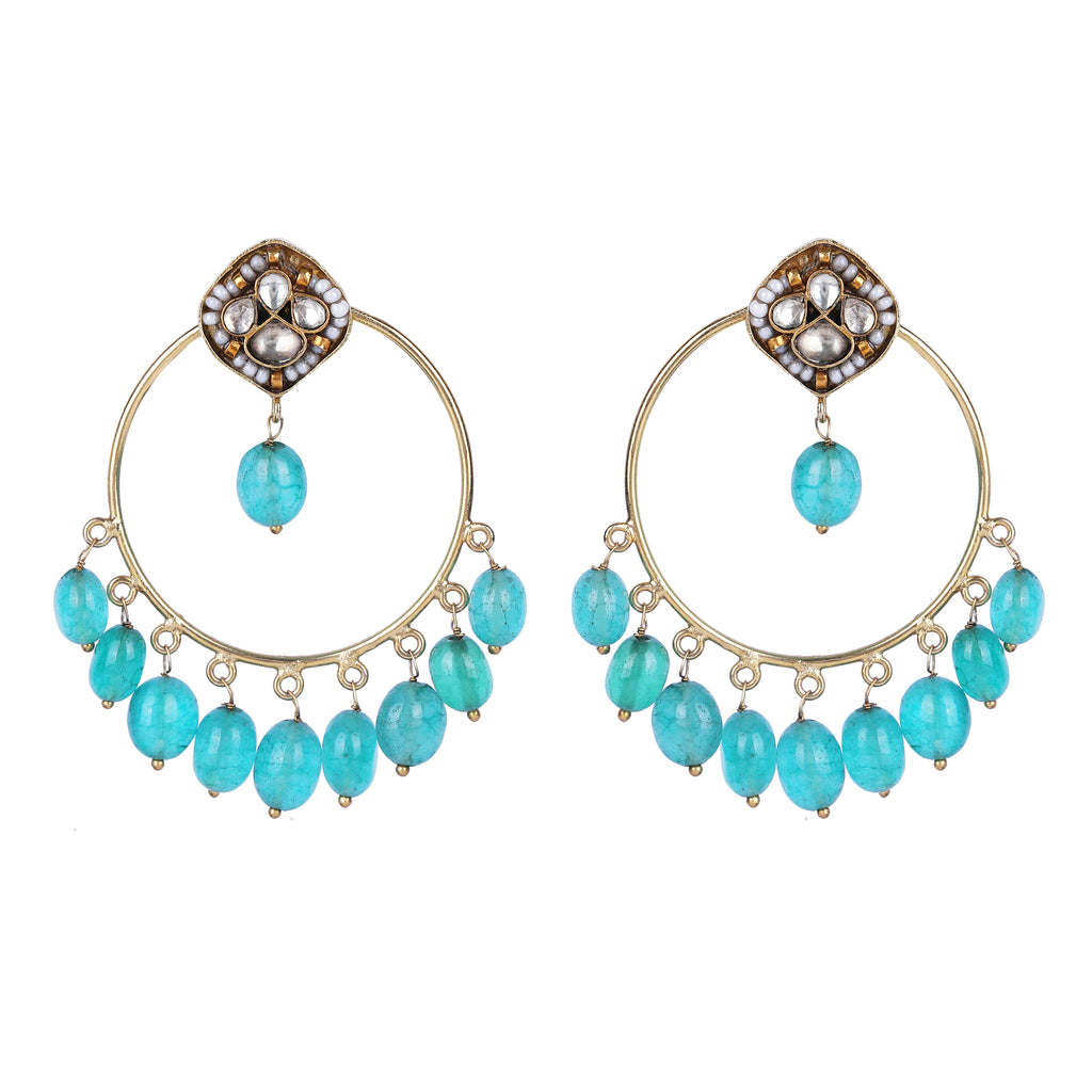 Details Size : Necklace - L23" XW2.5" Earring -L1" XW.05" Stone Setting : Kundan String(s) : Green Onyx Drop(s) : Finish : 22K Gold Plated Finding : Hook Link & Push Back Art Karat Jewelry is plated with 22k gold,...