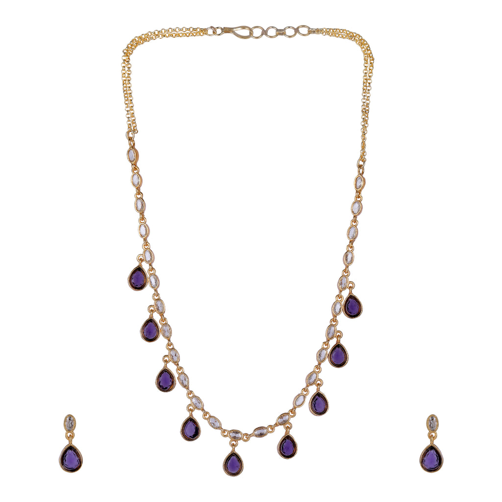 Details Size : Necklace L-10"Xw-.02" Earring L-0.7"XW-0.2" Stone Setting : zircon String(s) : Drop(s) : Finish : Gold Finding : ...